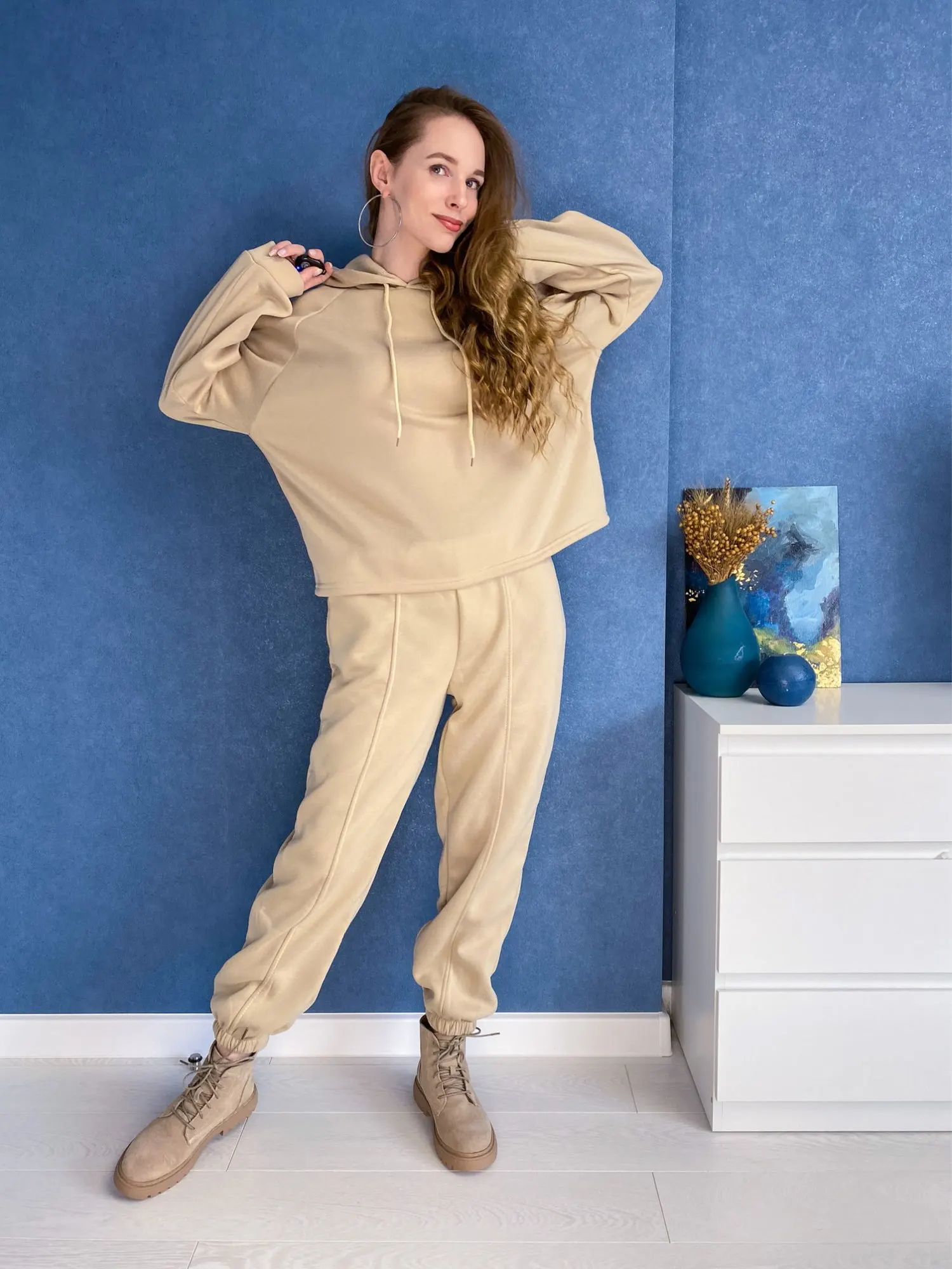 Спортивный костюм женский из двух предметов, флисовая толстовка с к...