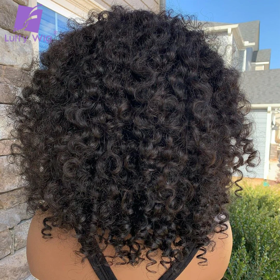 Парик Luffywig со съемными кудрявыми волосами и челкой, парик из человеческих волос ручной работы, индийский кудрявый парик без повреждений для женщин, плотность 200, 16 дюймов