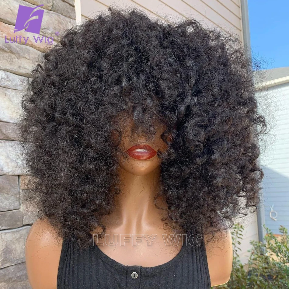 Парик Luffywig из кудрявых человеческих волос с челкой, парик на ос...