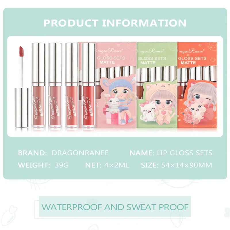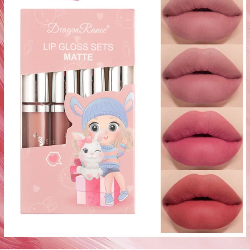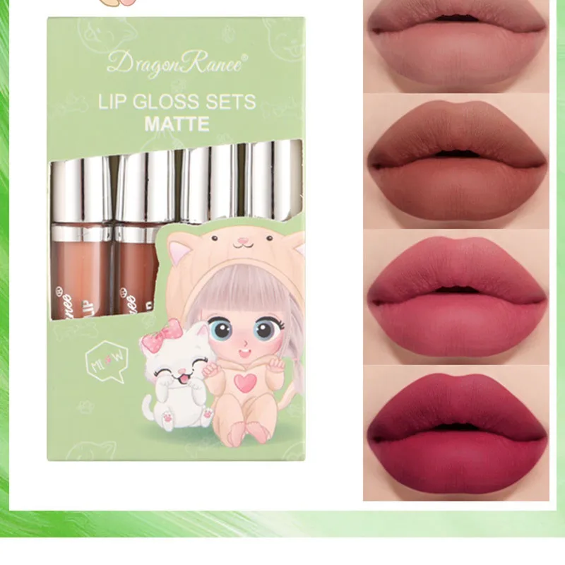 Набор бархатных матовых помад 4 шт., водостойкая стойкая, не прилипает, глазурь для губ, ровная помада с высокой цветопередачей, косметика
