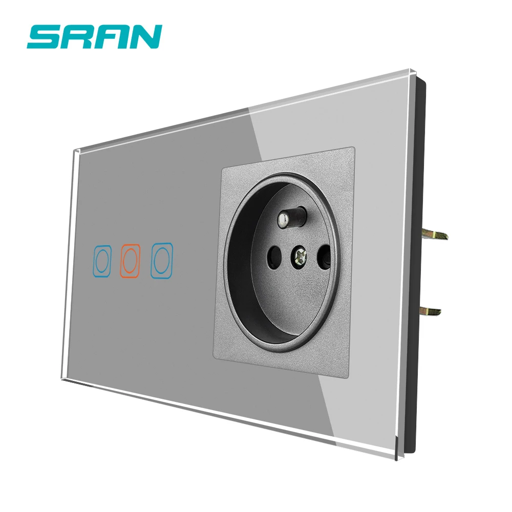 Сенсорный выключатель SRAN, розетка питания с выключателем света, 3...