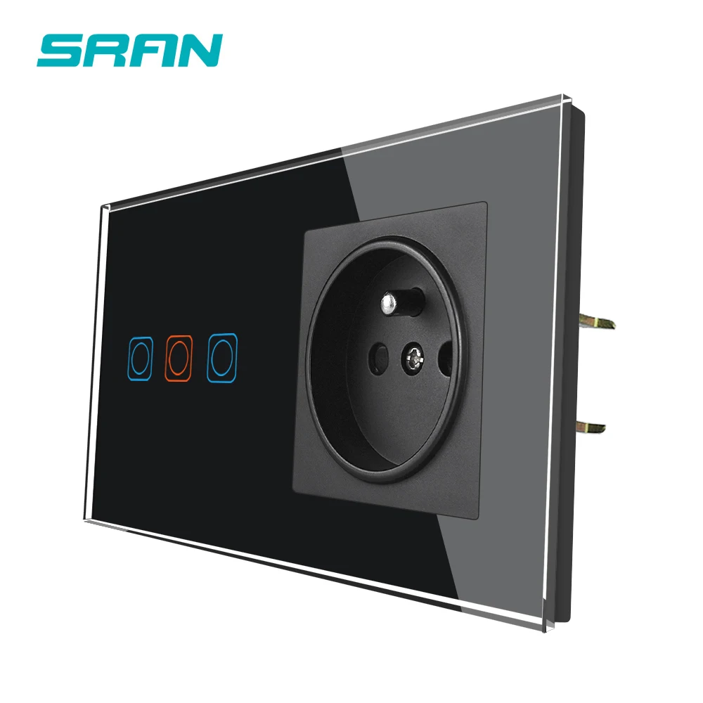 Сенсорный выключатель SRAN с розеткой, полностью стеклянная панель,...