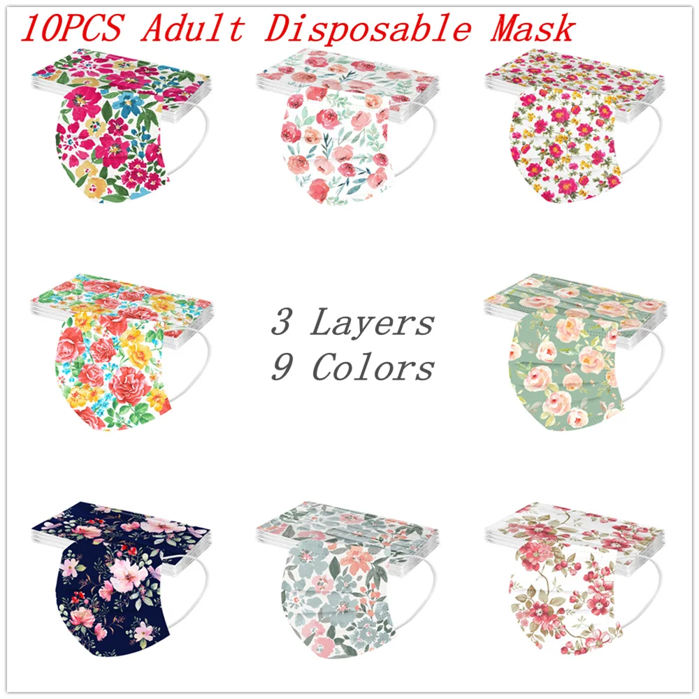 Маска одноразовая для взрослых, Маска с цветочным принтом для мужчин и женщин, Маска В индустриальном стиле, с тремя петлями, разные цвета, 10 шт.