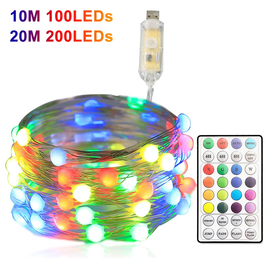 USB-гирлянда с дистанционным управлением, 16 цветов, светодиодная Мерцающая сказочная гирлянда, уличная Гирлянда для дома, сада, новогоднее, Рождественское украшение