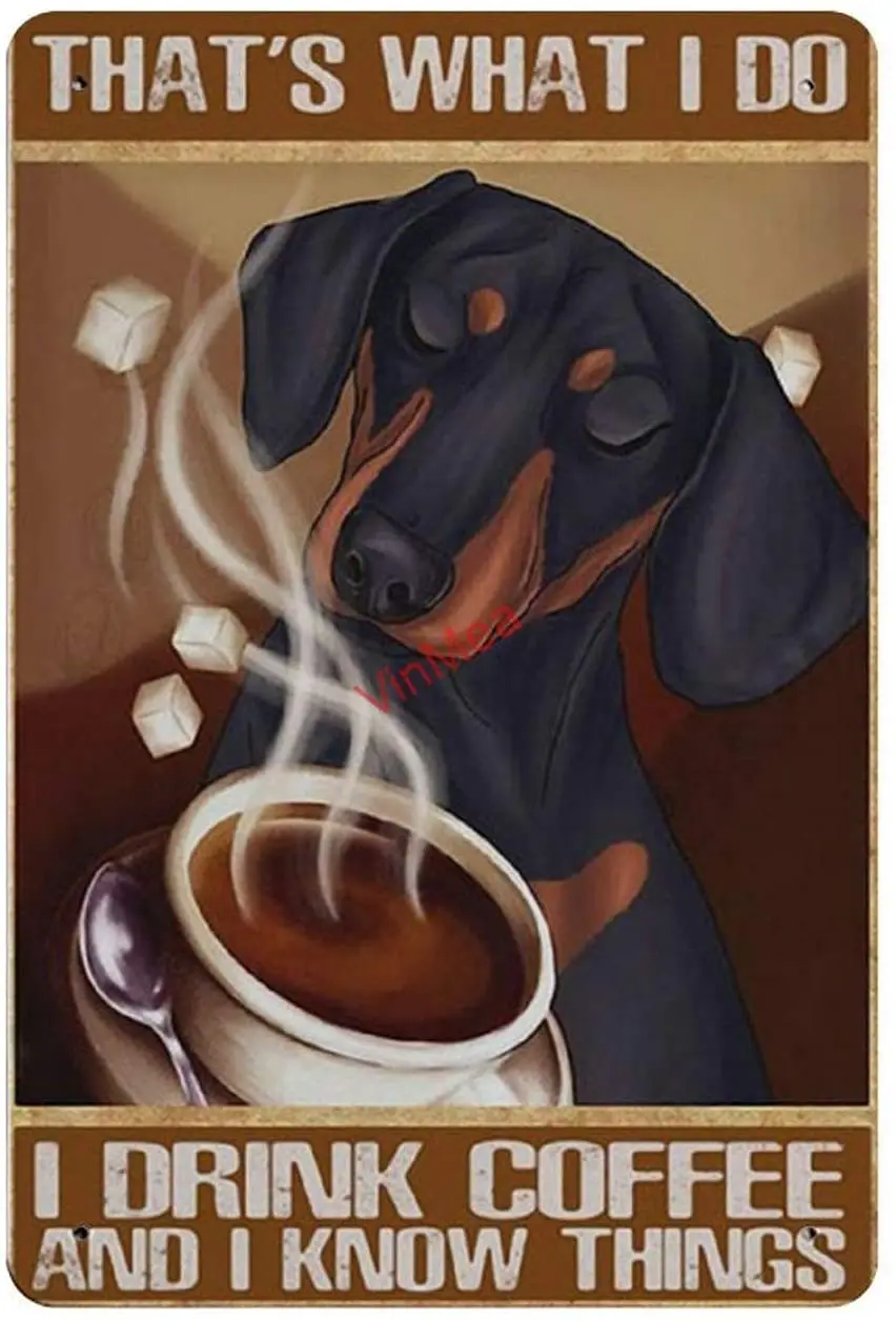 Собака, что я делаю, я пью кофе и я знаю, Репродукция вещей, металлический жестяной знак, Настенный декор