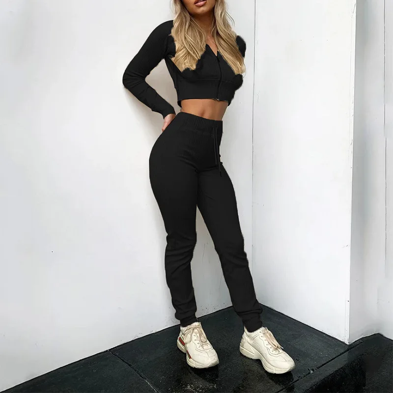 Женский спортивный костюм из двух предметов, повседневный укороченн...