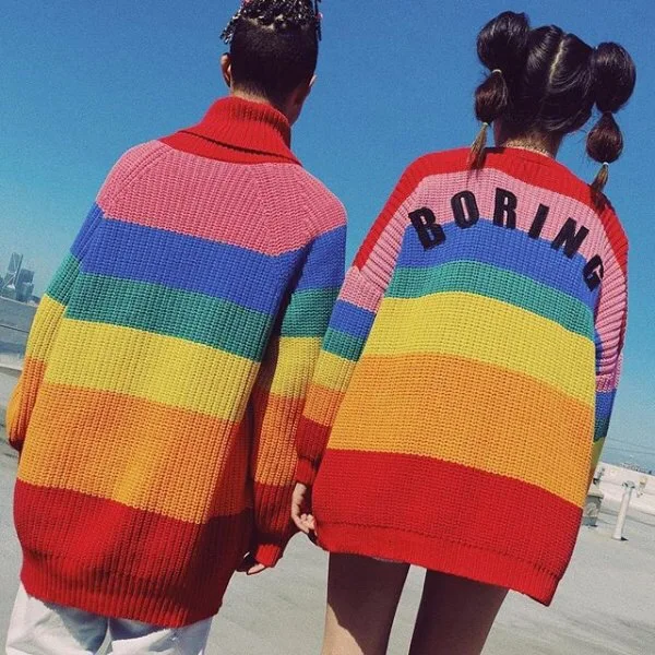 Осенний кардиган в стиле Харадзюку, женский полосатый Радужный свитер, пальто, женские свободные свитера, джемпер с вышивкой буквами, кардиганы