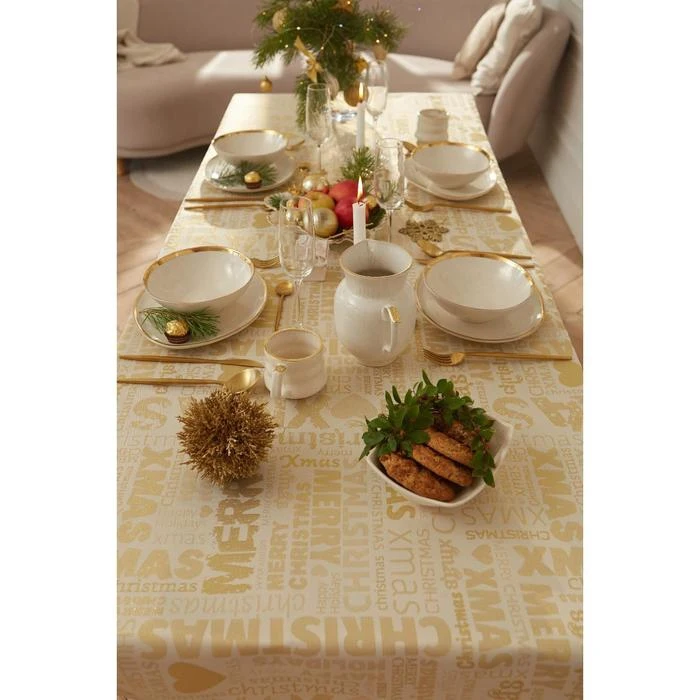 Скатерть ЭтельMerry xmas цв.золотой, 142*220 +/-3 см, 115 ±10 гр,100% 7097316