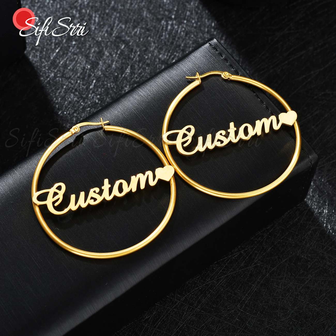 Женские серьги-кольца Sifisrri, сережки из нержавеющей стали золотого цвета с буквенным именем, подарок на день рождения