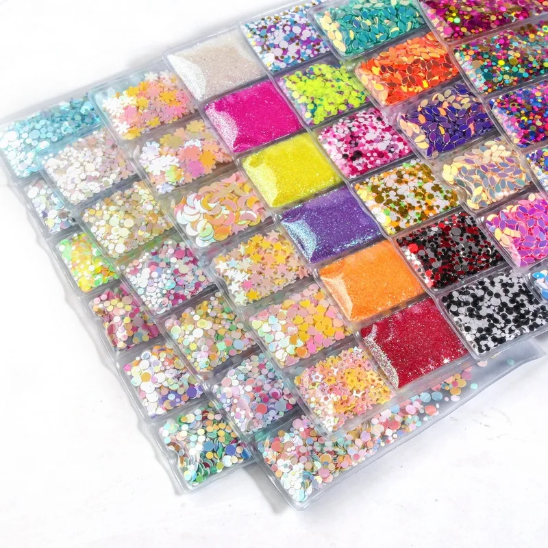 6 ячеекпакет, смешанные Блестки для ногтей, порошок, блестки, красочные хлопья для ногтей, Наклейка 3d, самодельные Слайдеры для ногтей, пыль для украшения ногтей