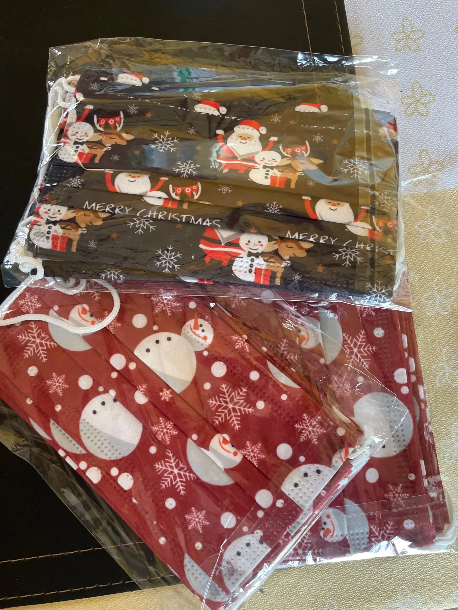 Маски хорошего качества, без запаха и с приятным материалом, они завершают ваши рождественские взгляды!