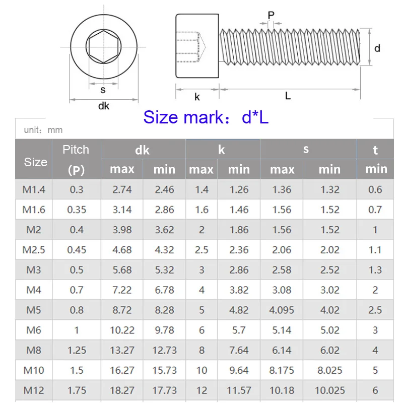 Model NumberM3 M4 M5 M6 M8 M10 M12