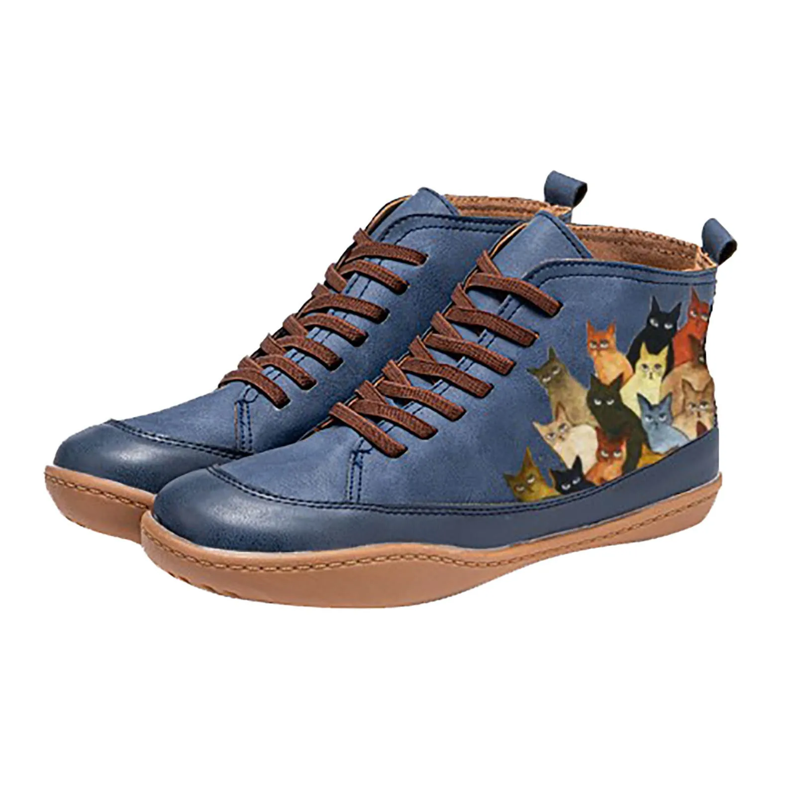 Женские ботинки с круглым носком, повседневные холщовые туфли на вы...