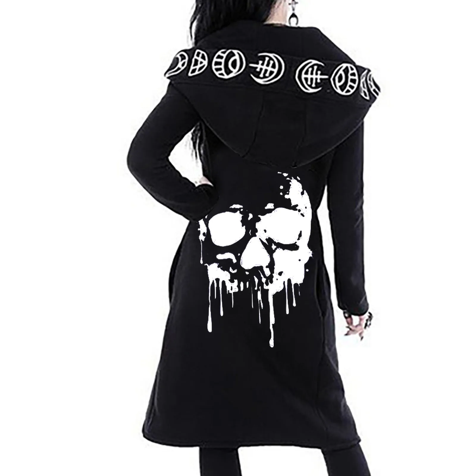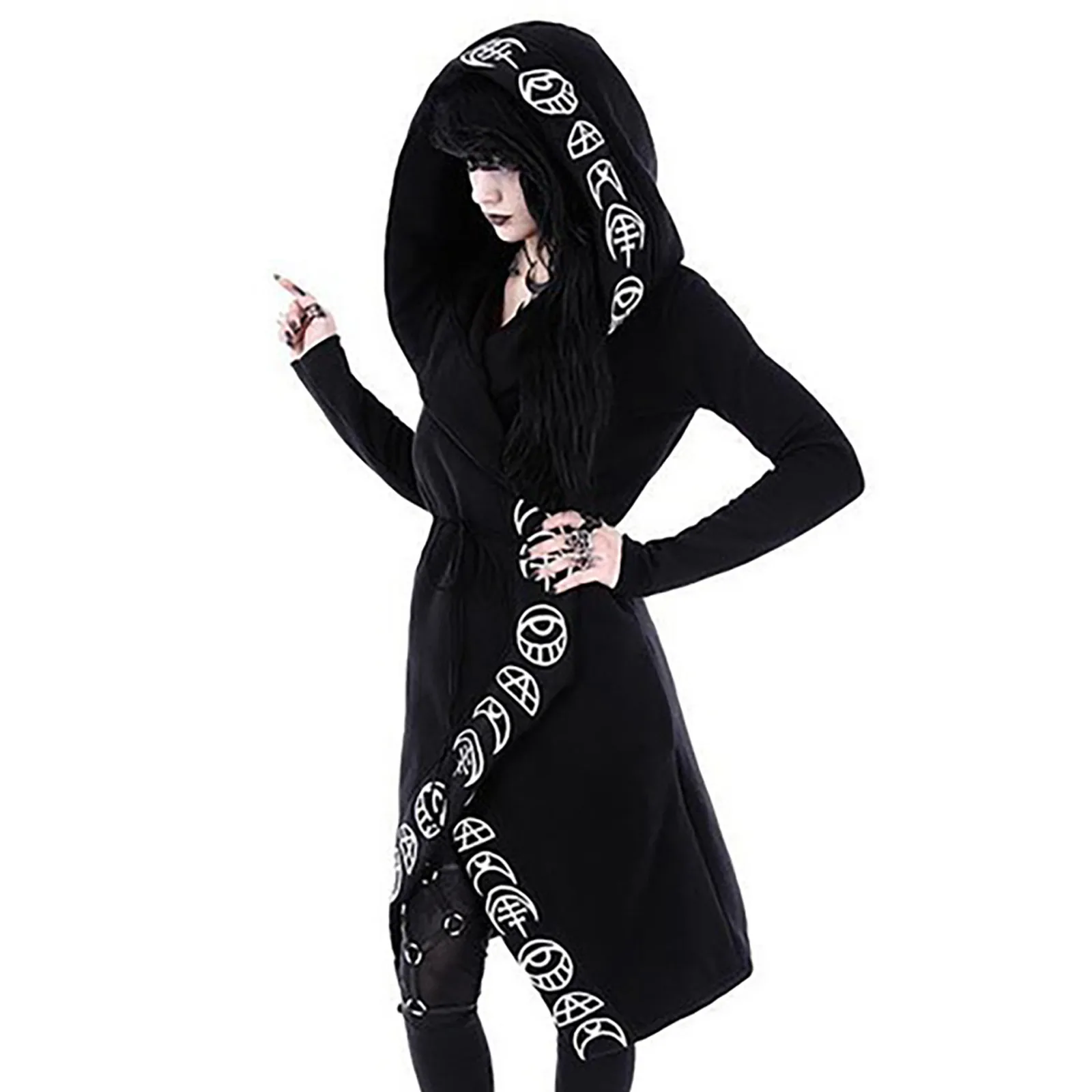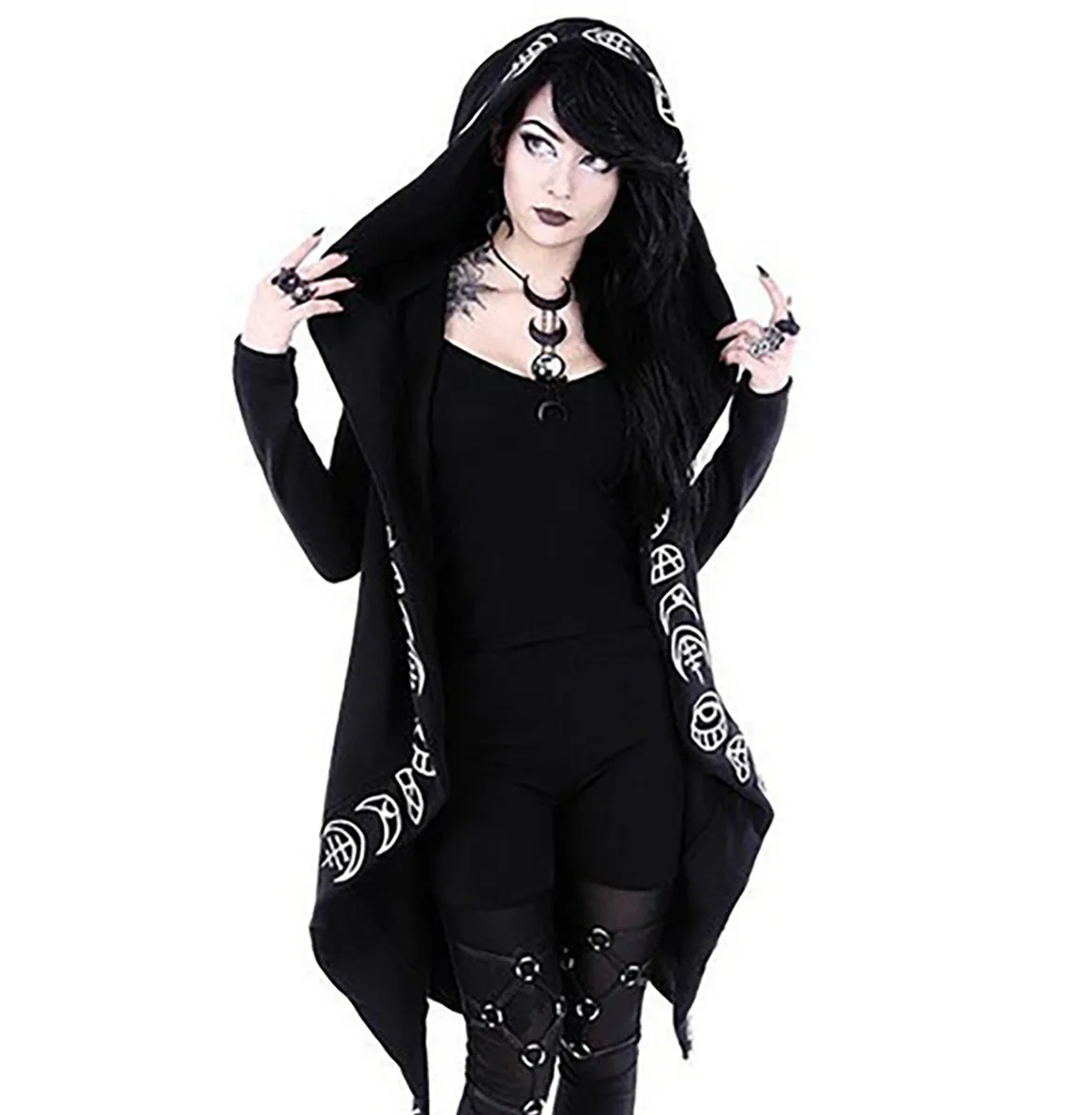 Женский винтажный свитшот в готическом стиле с длинным рукавом размера плюс, кардиган с капюшоном