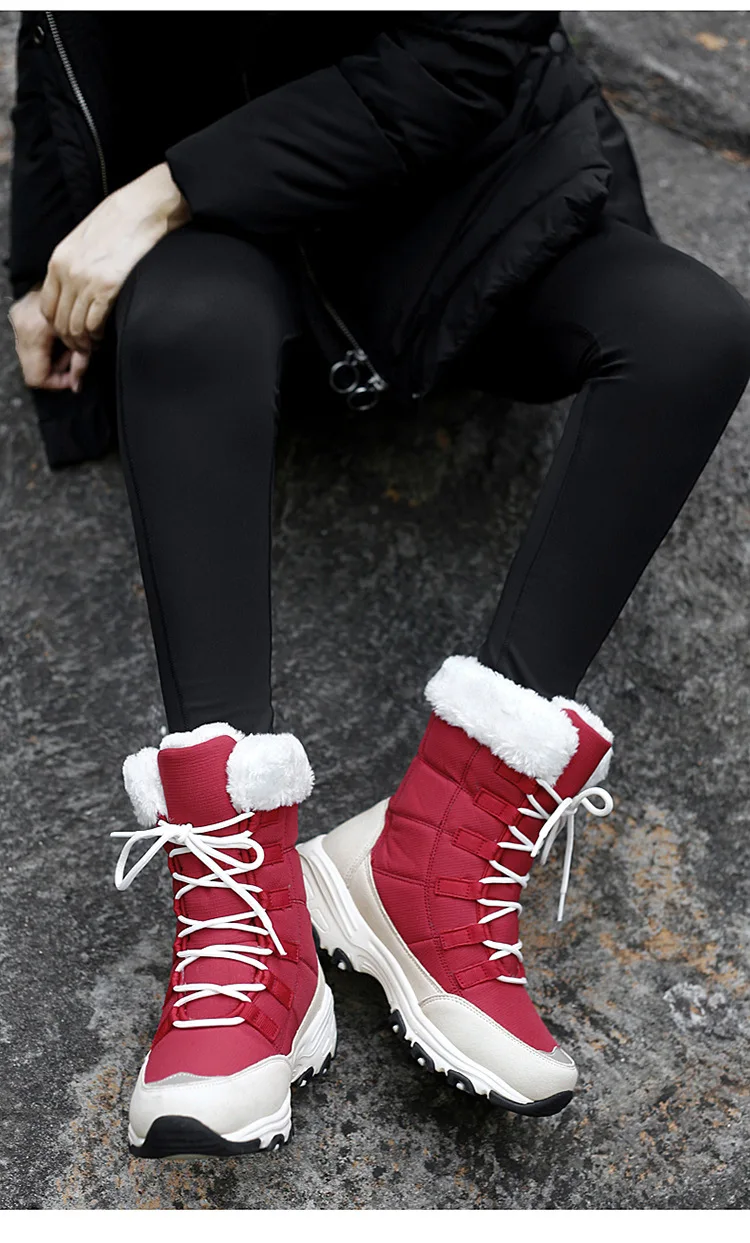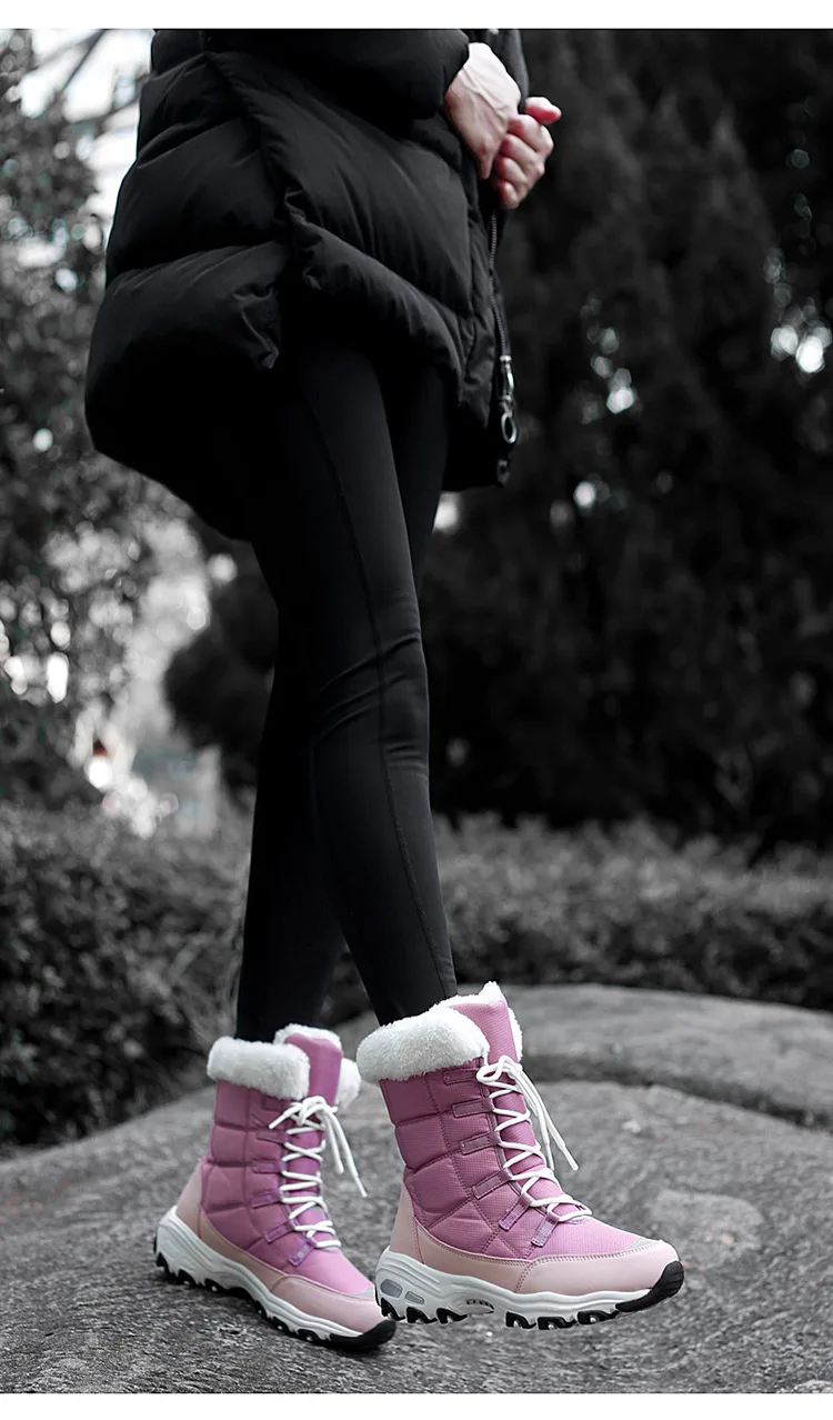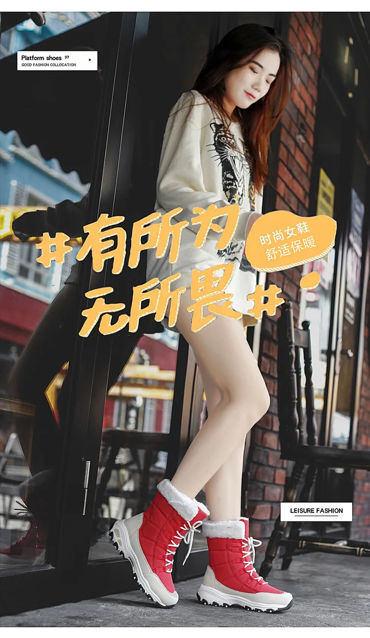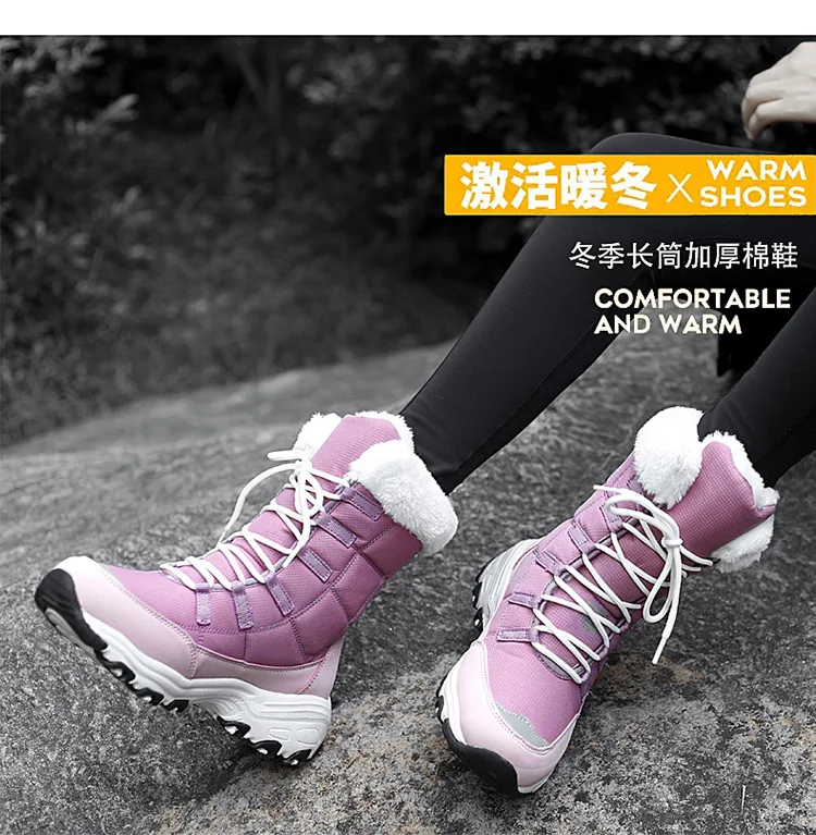Женская обувь, новинка, хлопковая обувь, зимние высокие ботинки для снега, обувь для отдыха на открытом воздухе, средней высоты, нескользящая обувь на толстой подошве от производителя