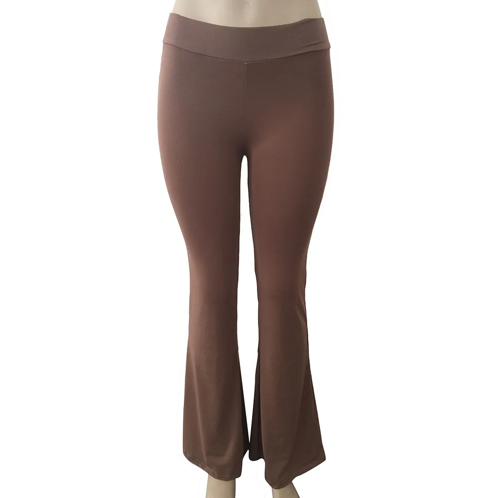 Женские леггинсы с широкими штанинами, спортивные штаны для фитнеса, Однотонные эластичные леггинсы, штаны с колокольчиками, тренировочные спортивные штаны для женщин