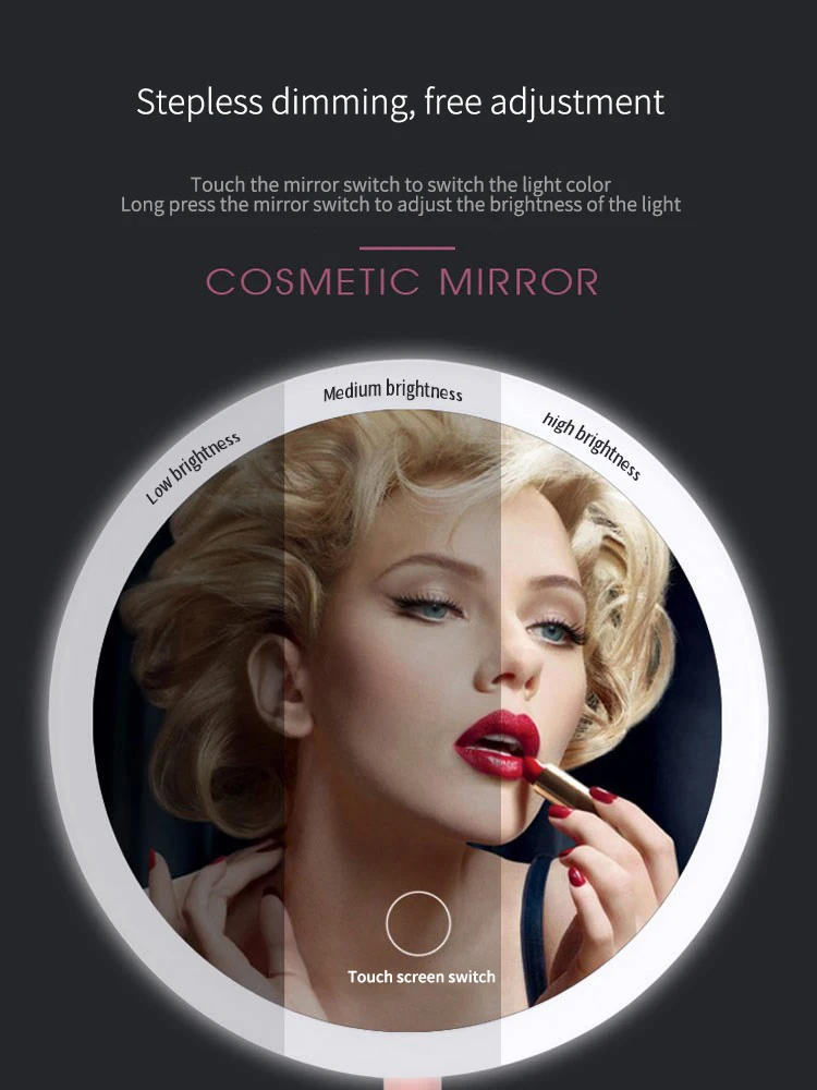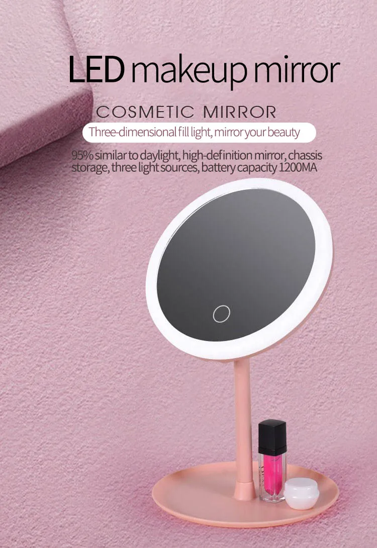 [Название продукта]: светодиодный косметическое зеркало[Материал изделия]: абс + зеркало[Размер товара]: как показано на рисунке[Цвет изделия]: розовый/белый[Описание товара]: монохромный светильник/на каждый день, 3 цвета светильник[Метод зарядки]: зарядка через USB