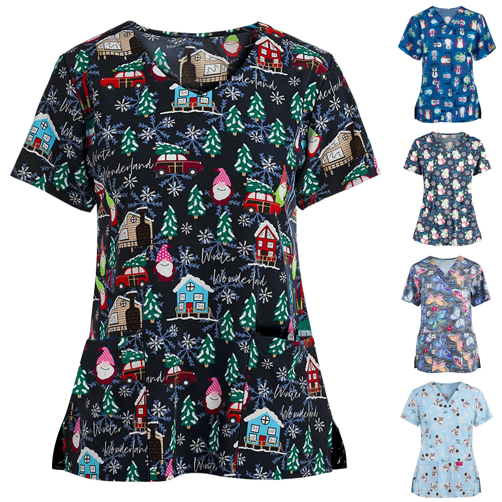 Рождественская униформа медсестры скрабы Топы женские Мультяшные с ...