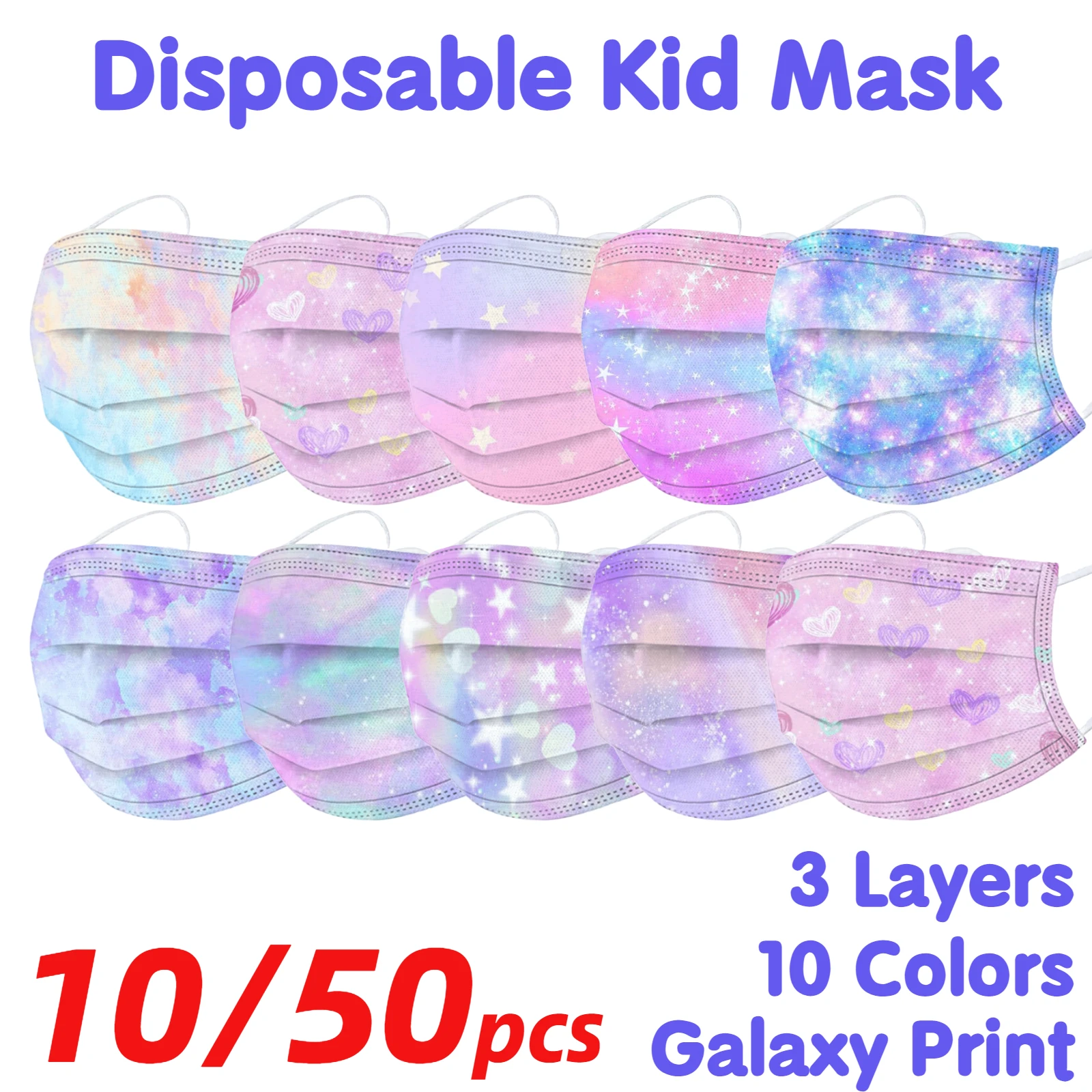 10 шт., детские одноразовые маски для лица с радужным принтом