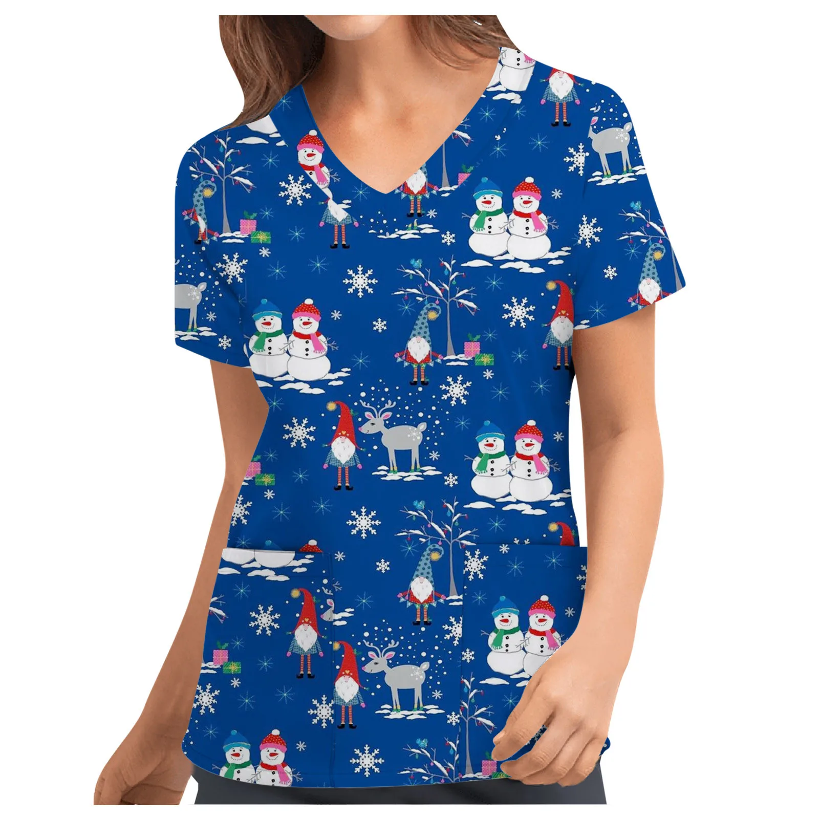 Рождественская униформа медсестры, Женская спецодежда, Рабочая Униформа с коротким рукавом, кавайный принт снеговика, женская униформа, униформа для кормления