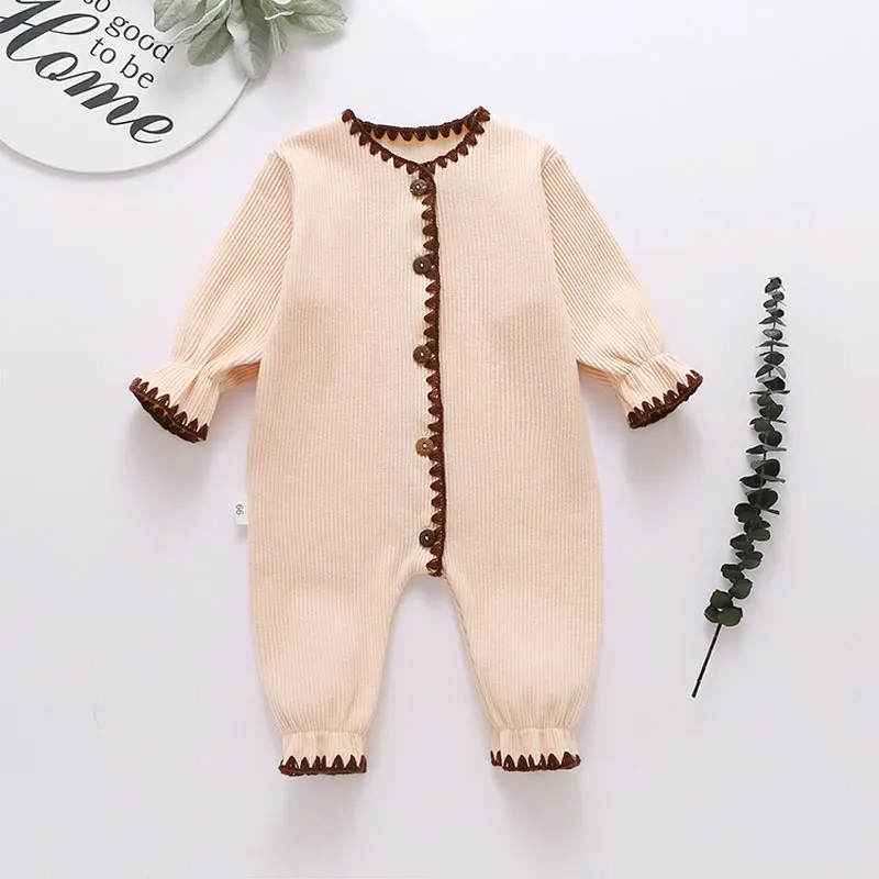 Одежда для маленьких девочек на весну и осень, модная однотонная Одежда для новорожденных, комбинезоны для девочек, хлопковая детская одежда с длинным рукавом для 3-18 месяцев