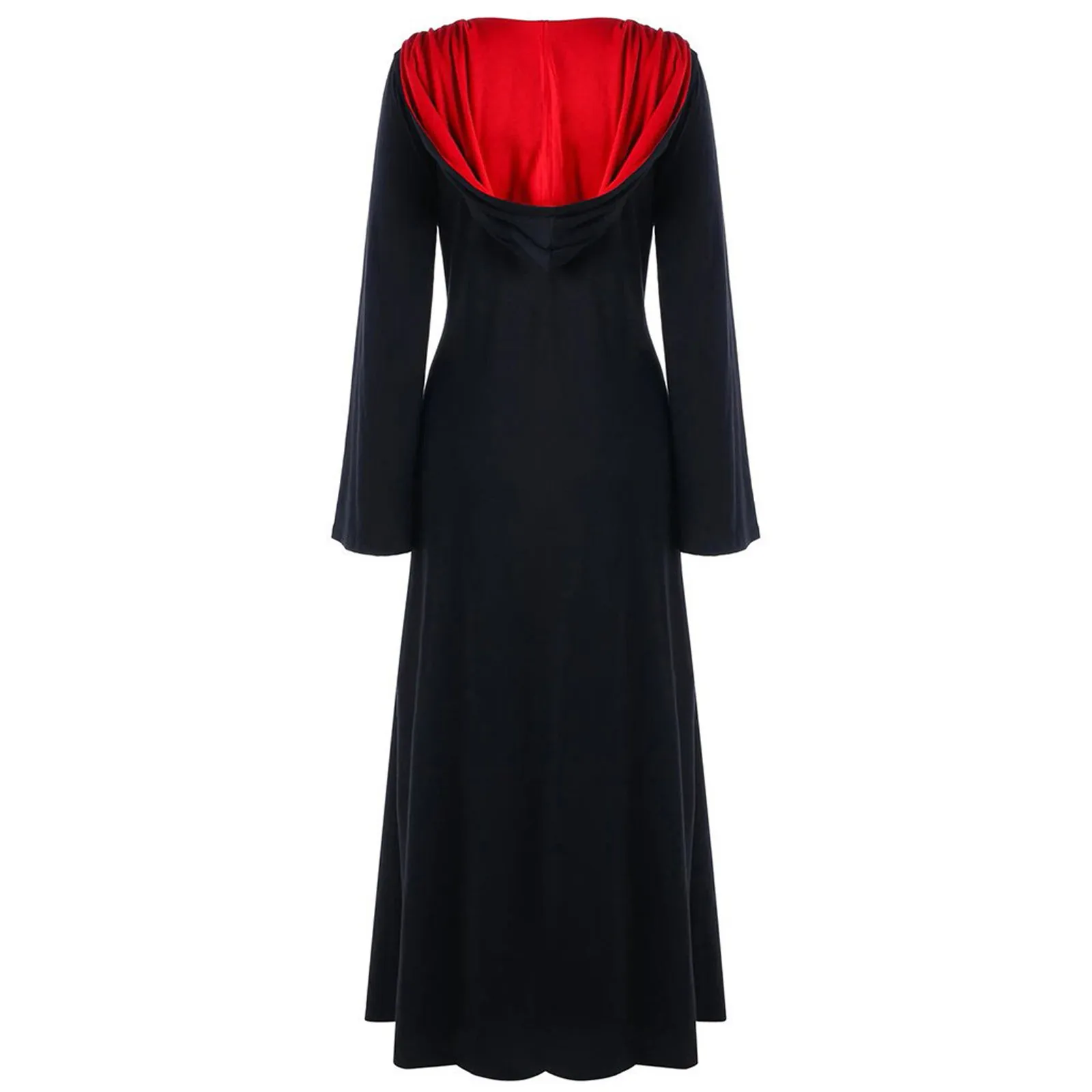 2021 костюмы на Хэллоуин для женщин, женские толстовки с капюшоном в виде ведьмы, платье размером 5XL с капюшоном, длинное платье макси на шнуровке с длинным рукавом