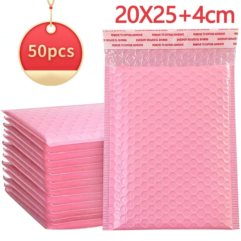 25 шт пузырчатых конвертов с подкладкой, полиэтиленовый пакет, розовый