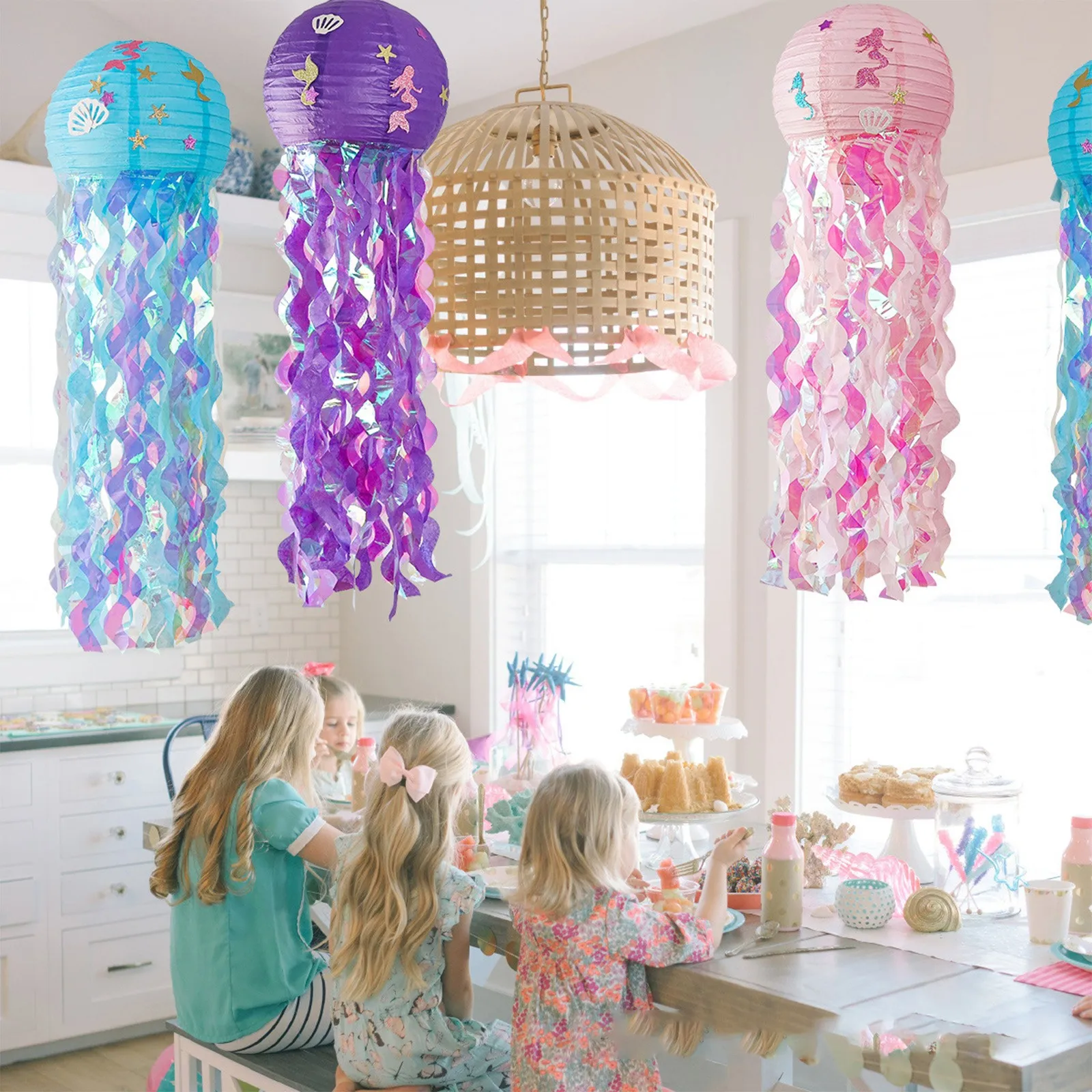 Русалка тема парти Декор DIY Медуза бумажный фонарь под морем вечер...