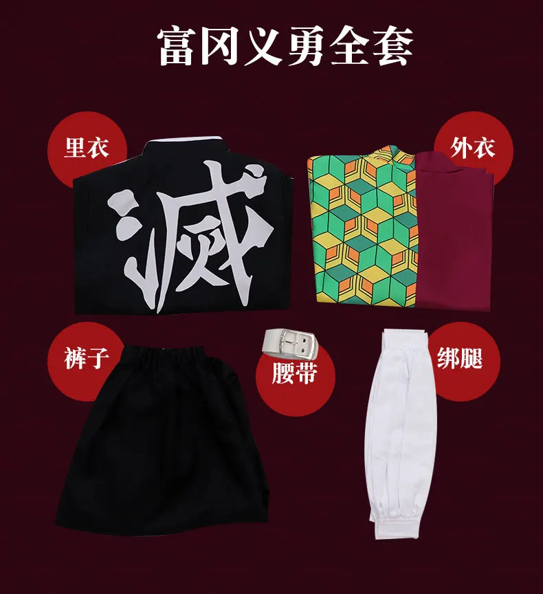 6. Tomioka Giyuu: топ + брюки + ремень + плащ + головной убор + одежда для ног (как показано на фото)