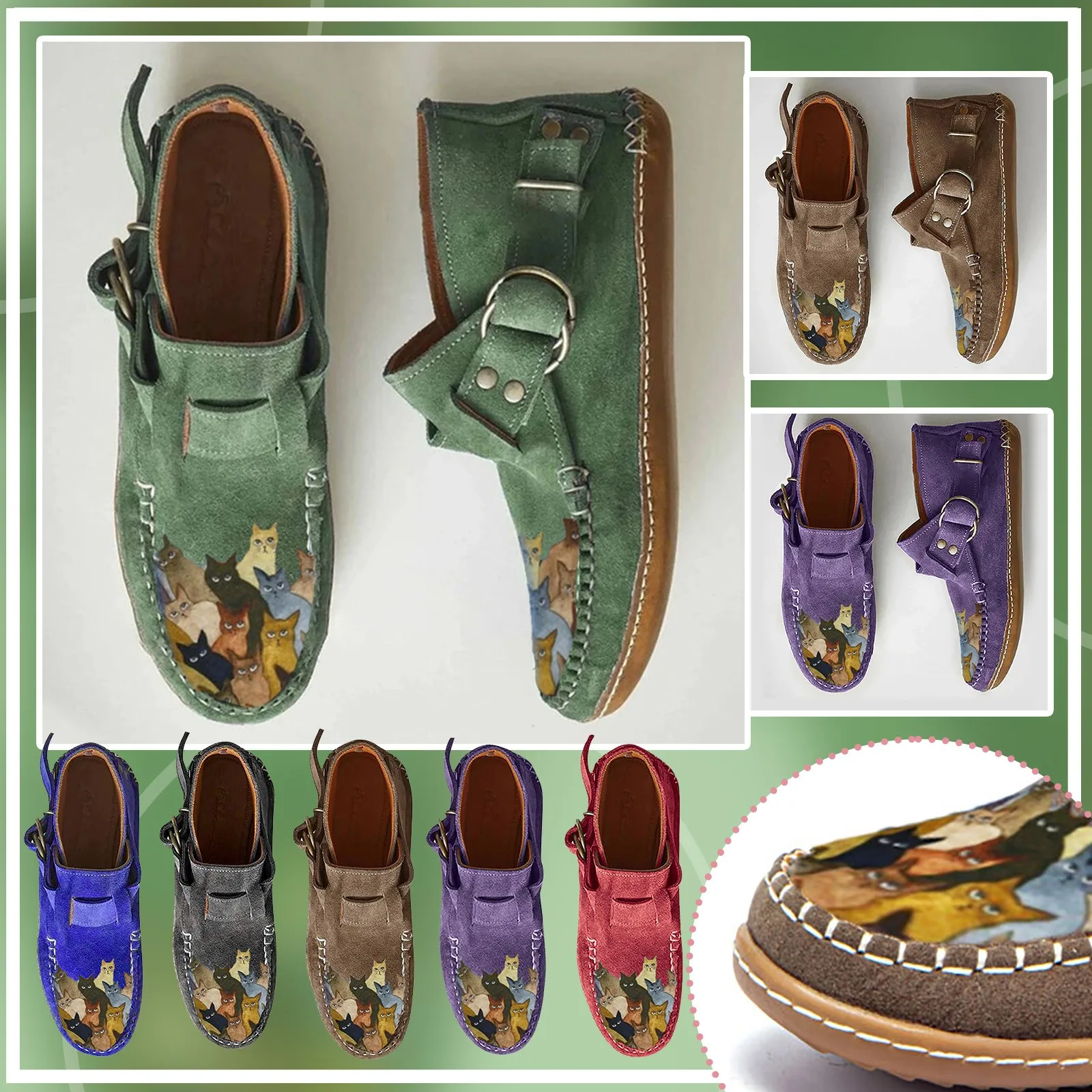 Женская модная повседневная обувь на высоком каблуке с круглым носком; Обувь на плоской подошве с ремешком; Обувь для кошек