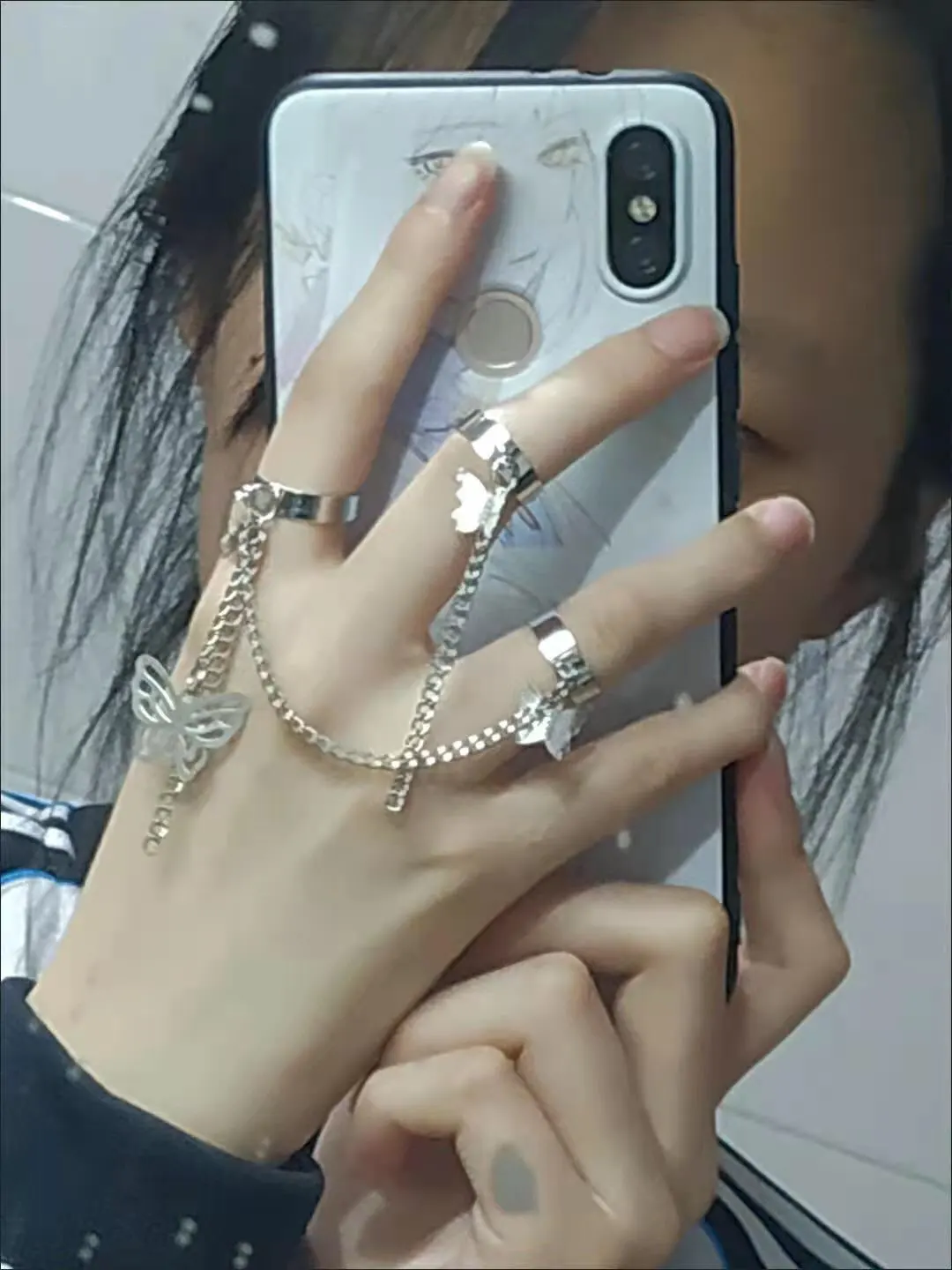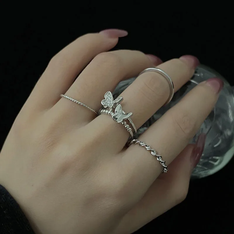 Комплект колец с цепочкой-бабочкой для женщин 2021 модные корейские эстатические винтажные кольца на палец в стиле панк для девочек неизменяемые гранж ювелирные изделия