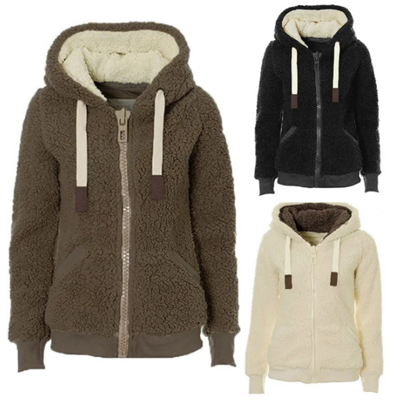 Зимний флисовый свитер, пушистый толстый теплый кардиган с капюшоном на молнии, Женское зимнее пальто, Шерстяные Топы, кардиган, свитеры
