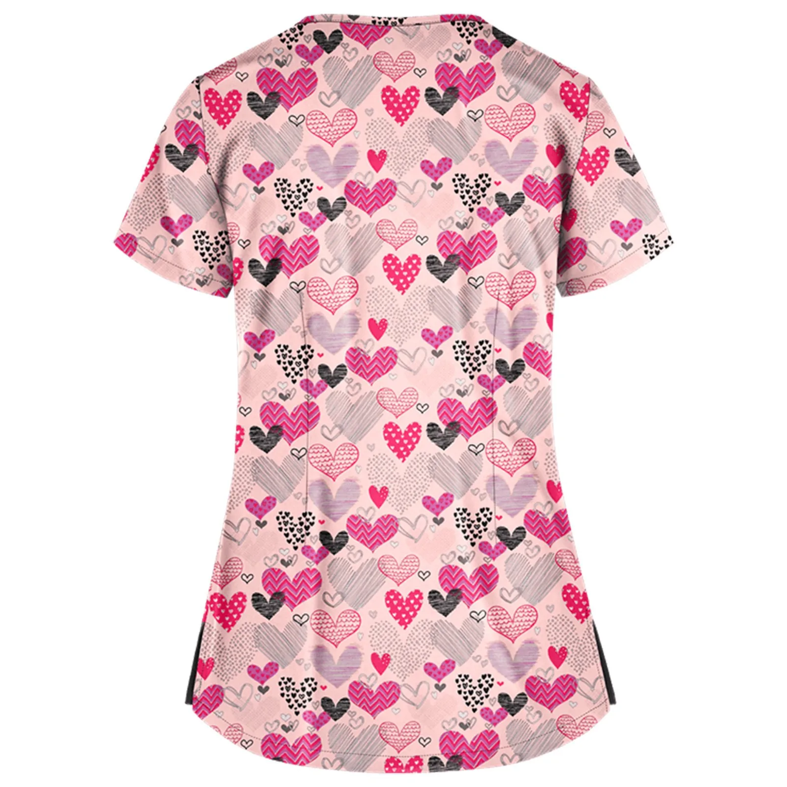 Униформа медсестры Женская, с принтом животных, с коротким рукавом, с V-образным вырезом и карманами
