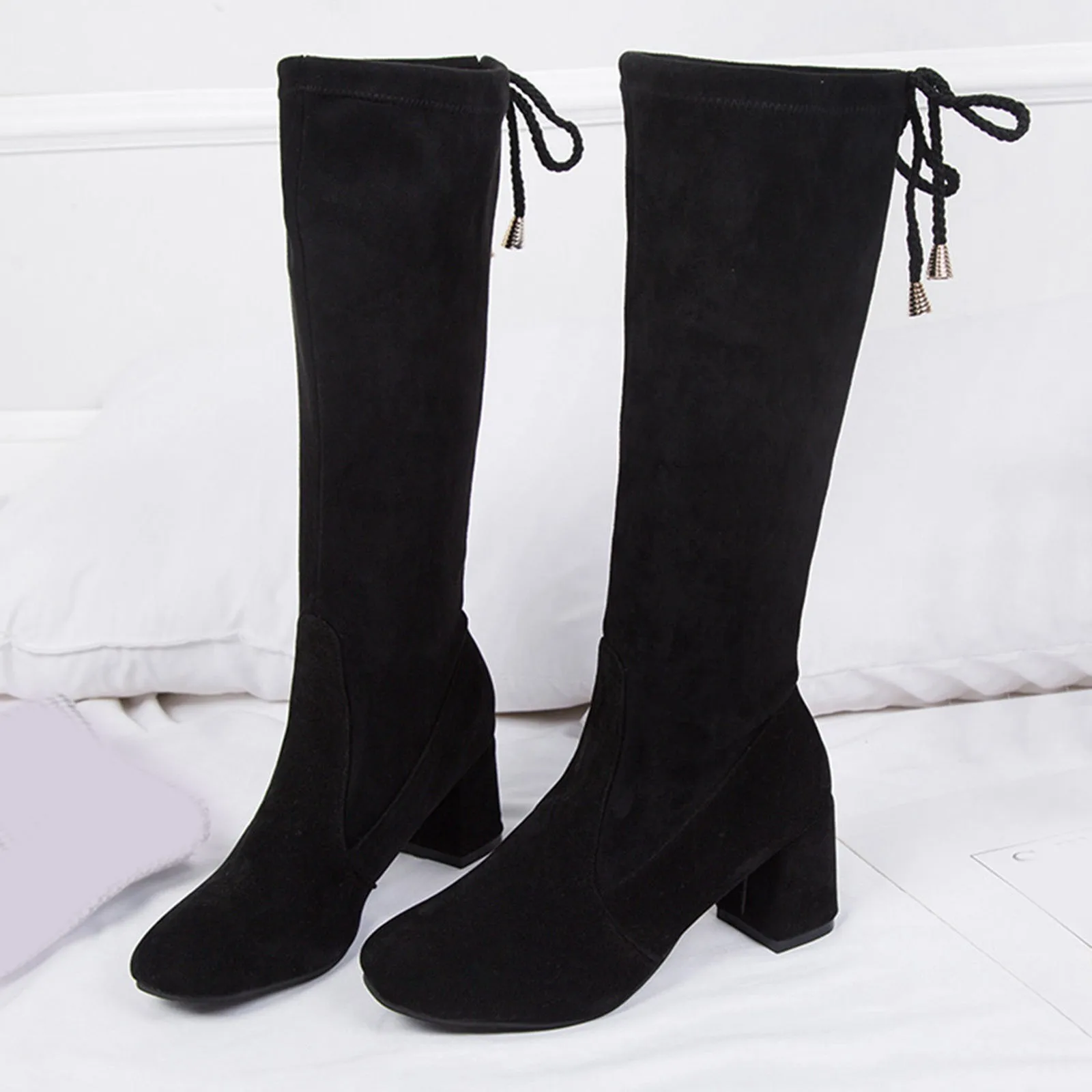 Женские модные повседневные однотонные высокие сапоги до колена без шнуровки обувь на высоком каблуке