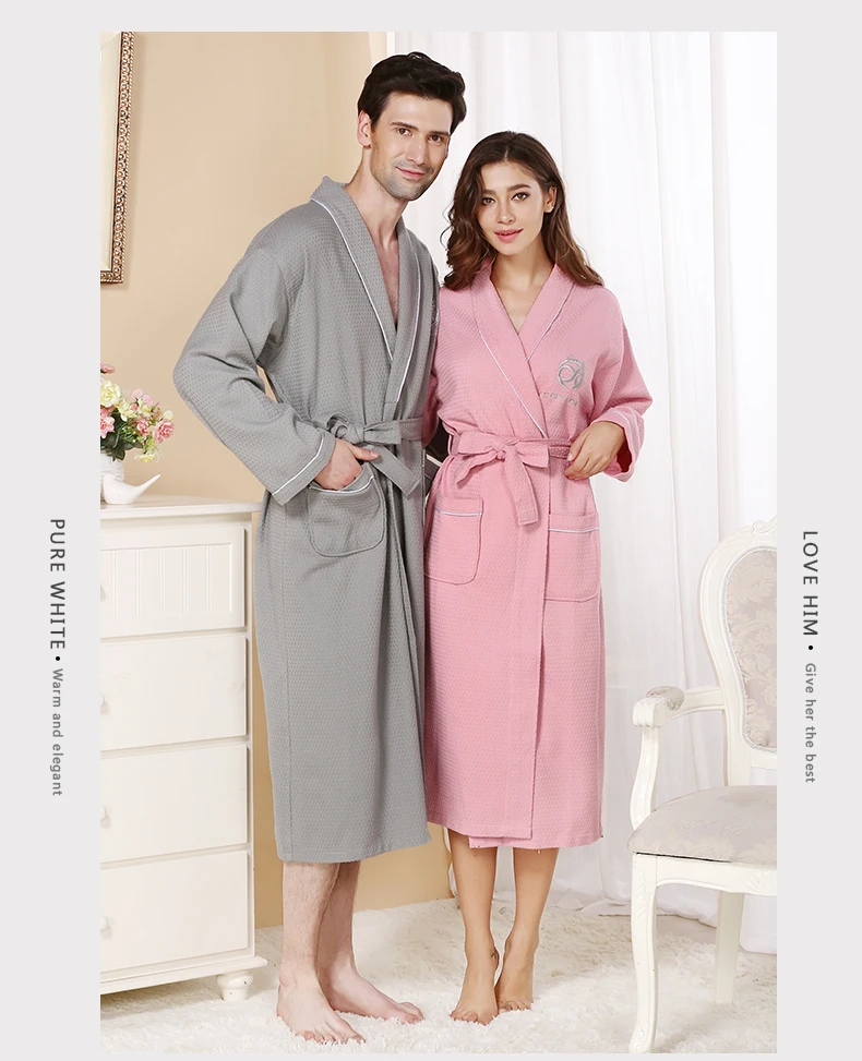 Женский халат из 100% хлопка, вафельный женский халат с длинными рукавами, дымящаяся от пота пара, кимоно, халат, отель SPA, новый женский халат, ночная рубашка