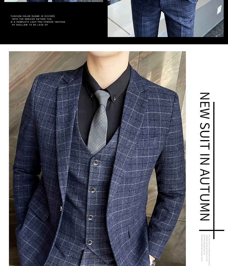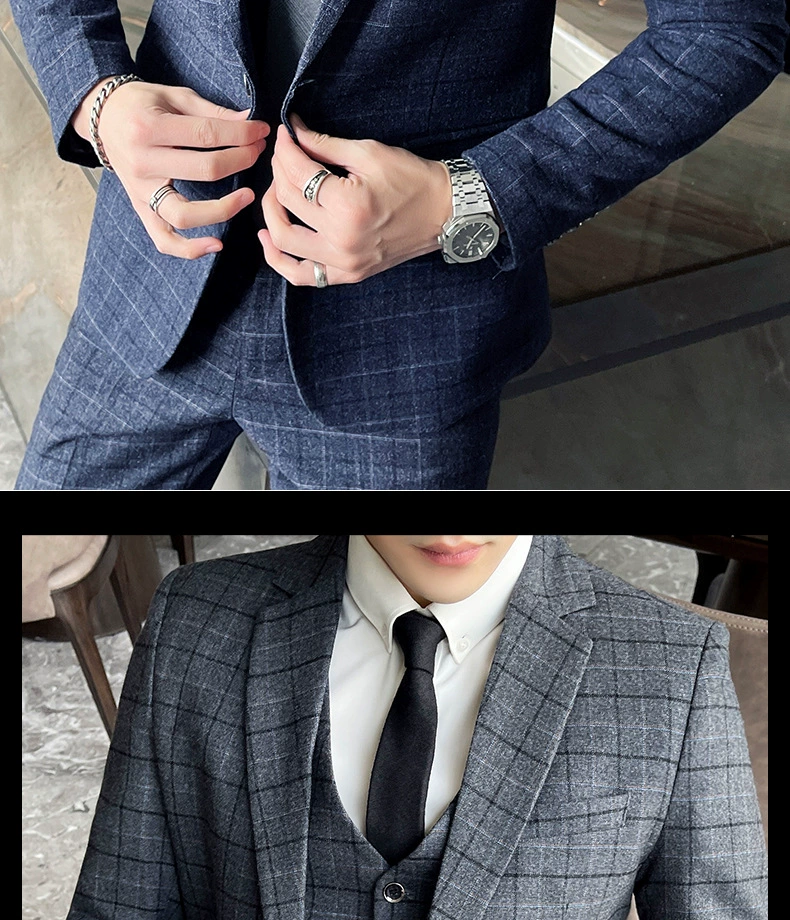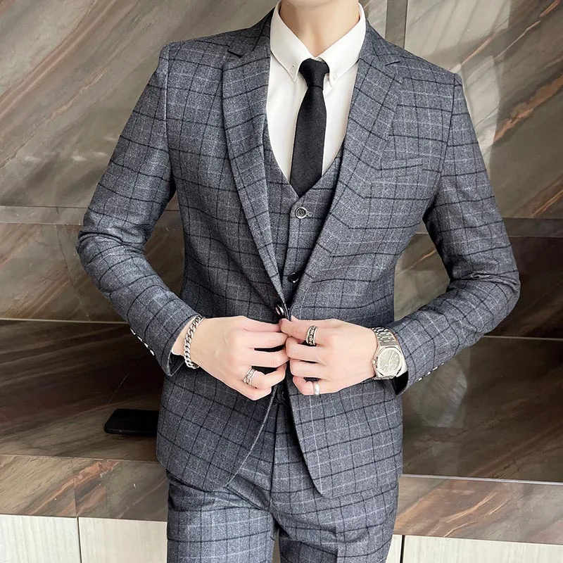 Мужской облегающий комплект из 3 предметов, клетчатые костюмы, стил...