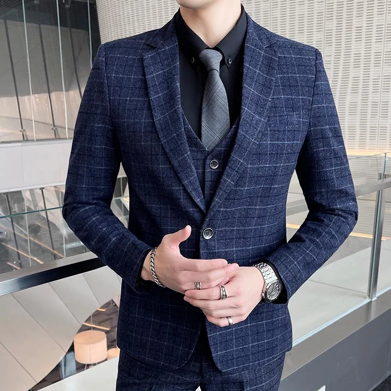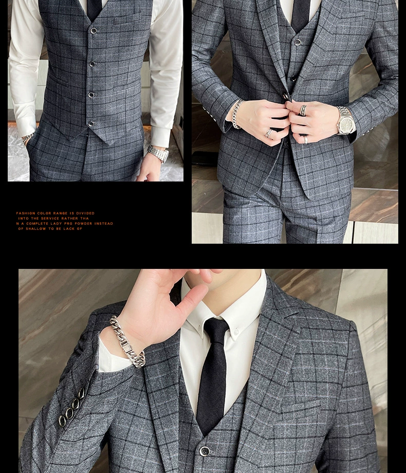 Комплект из трех предметов, Блейзер, жилет и брюки, модный мужской ...