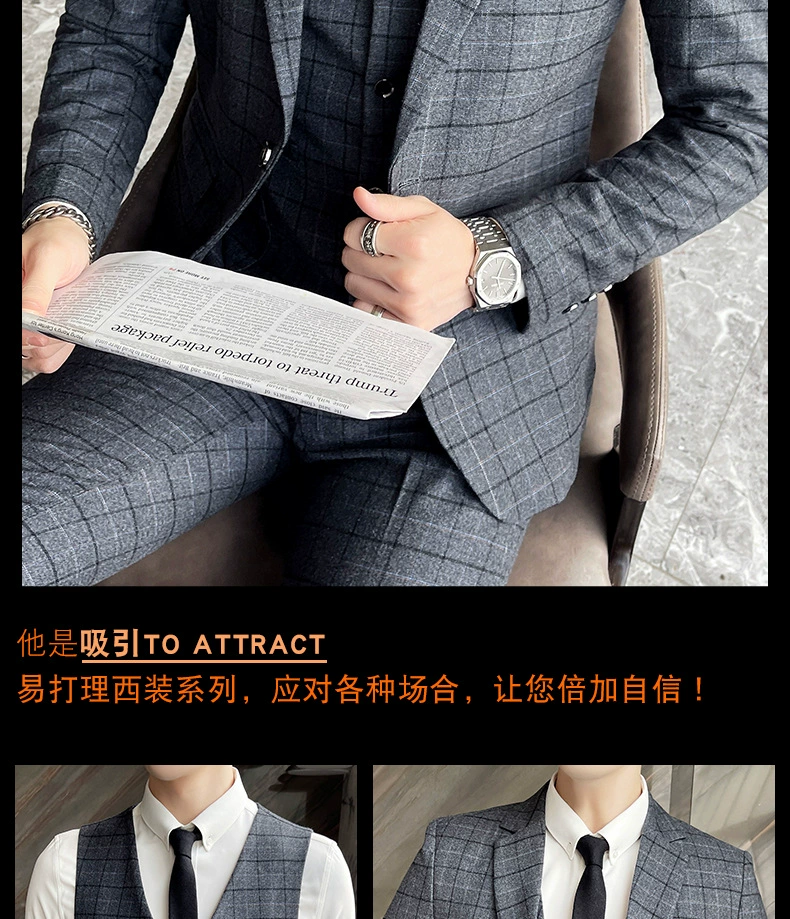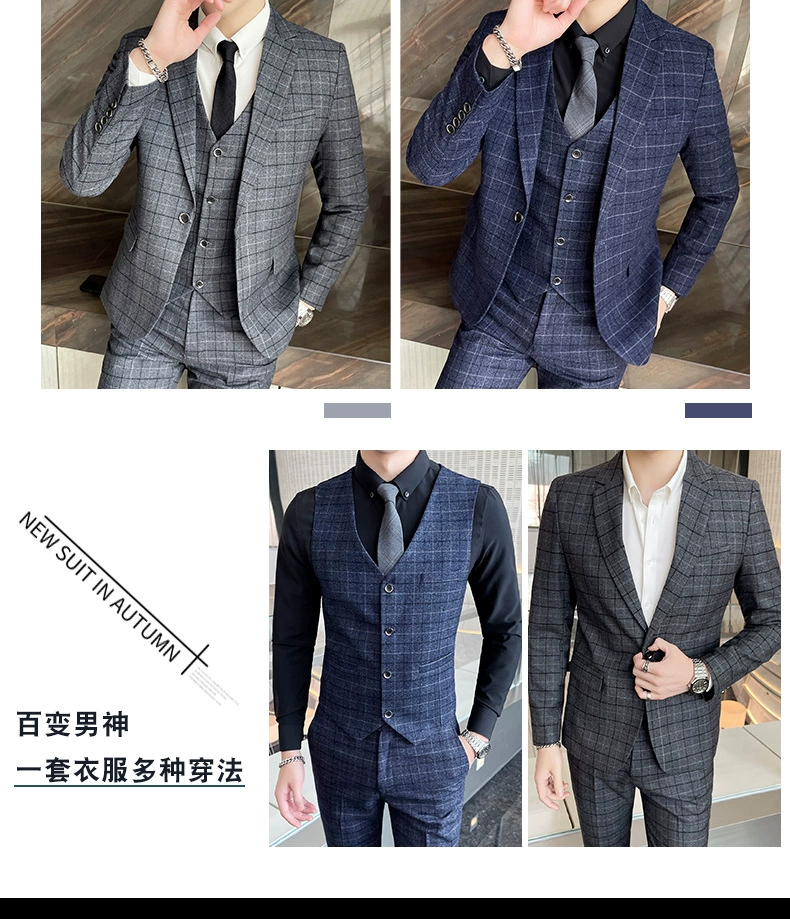 Пиджак + брюки + жилетвесна-осень 2021, модный мужской деловой Повс...