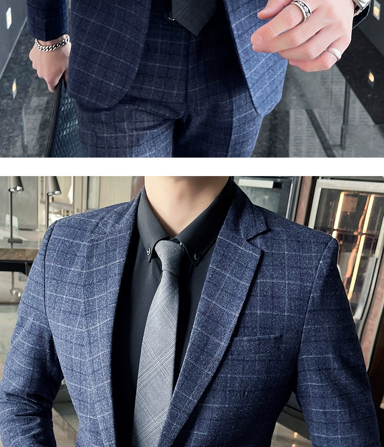 Мужской свадебный комплект из трех предметов, клетчатый синий и сер...