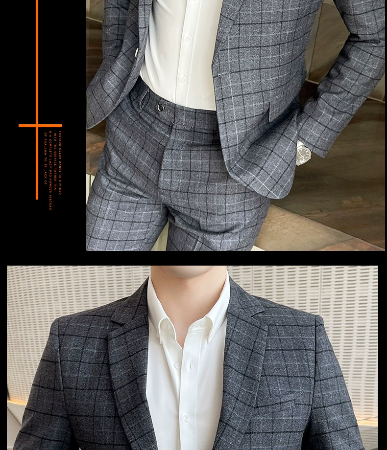 Мужские блейзеры, деловые клетчатые костюмы, брюки, комплект из 2 п...