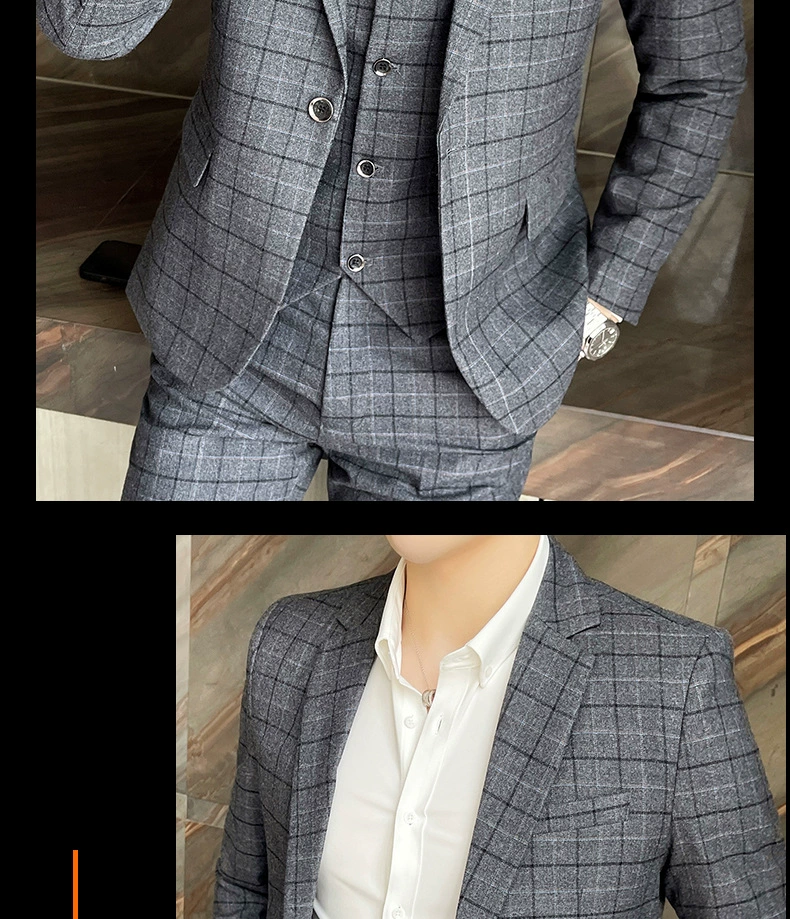 Клетчатый костюм, мужской блейзер, жилет и брюки, деловой костюм в ...
