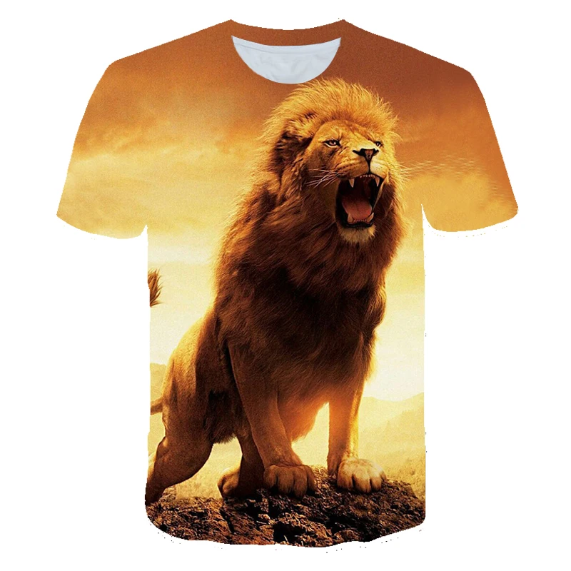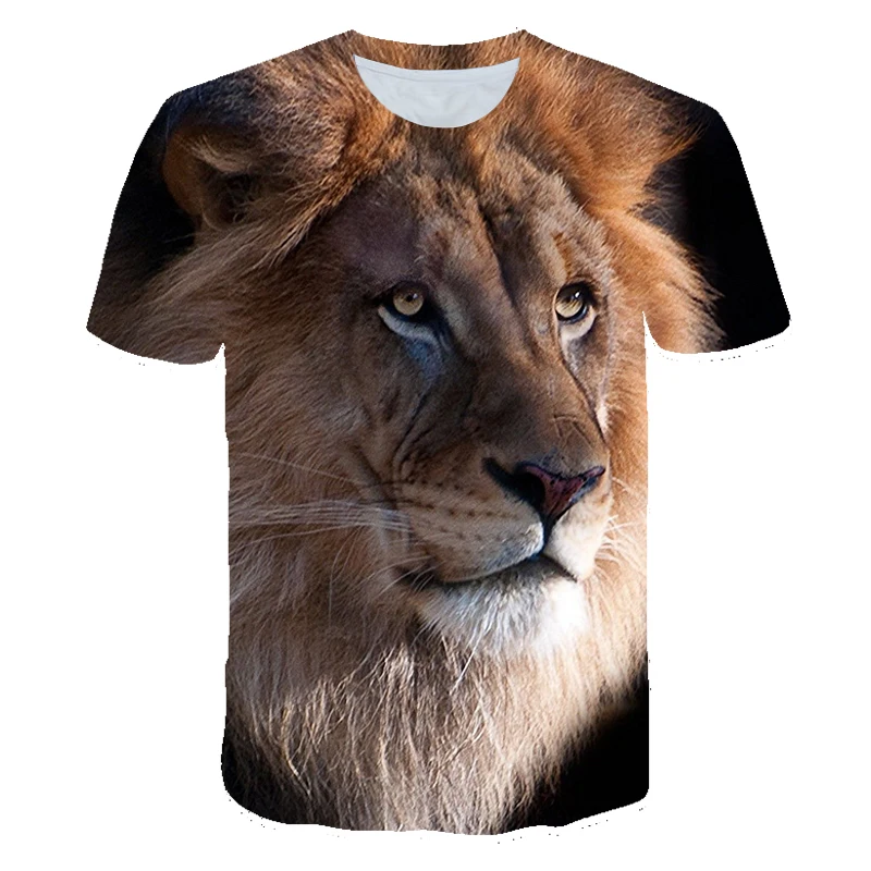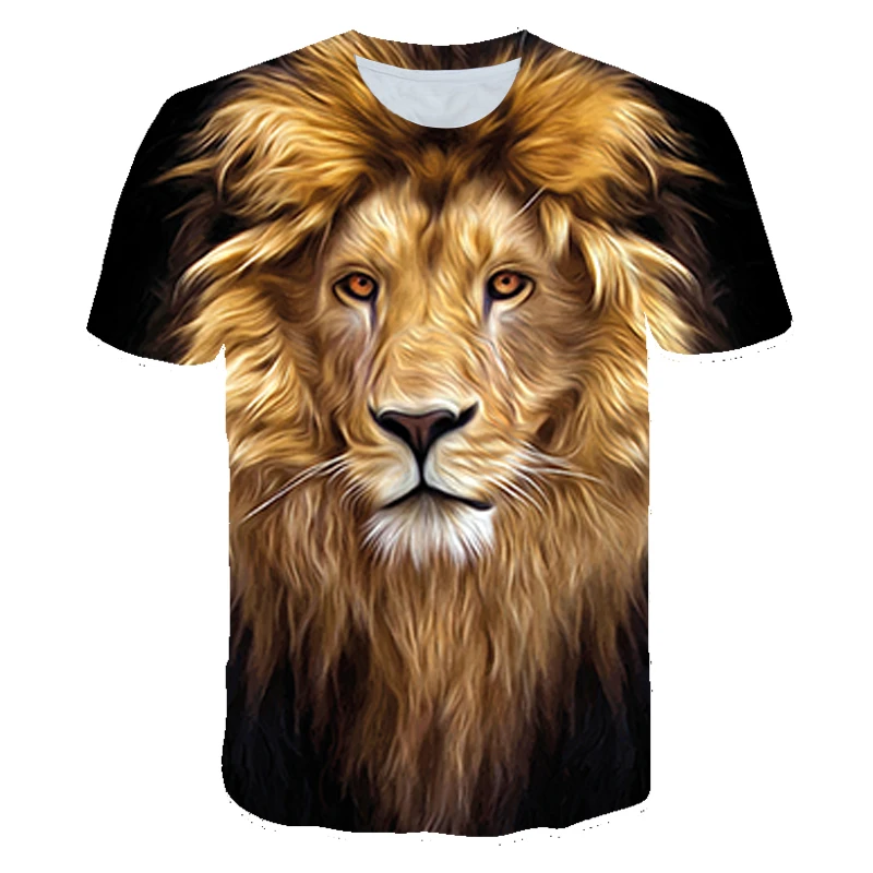 Детские футболки 2021, крутая футболка с 3D принтом льва, летние топы с короткими рукавами с животными, детская одежда для мальчиков и девочек, детская футболка