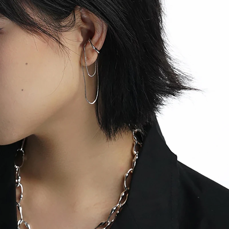 1 шт., нестандартные двухслойные серьги-клипсы с кисточками для женщин, цепочка, клипса для ушей без отверстия для ушей, манжеты для ушей, женские серьги