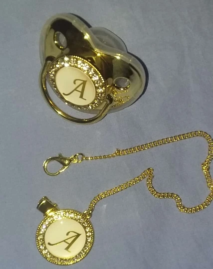 Золотая детская соска и 26 инициальных букв, блестящие соски-клипсы...