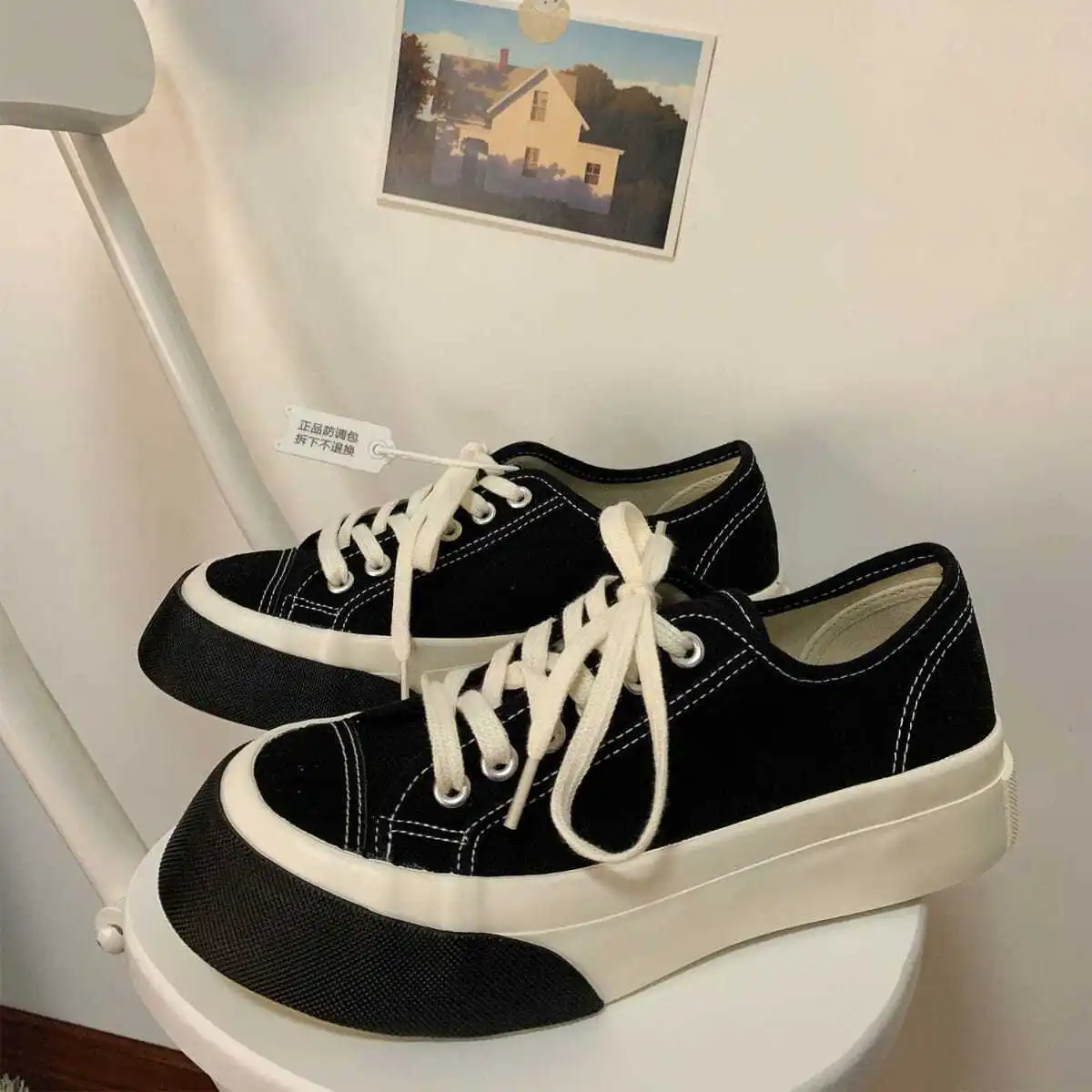 Женские кроссовки, спортивная весенняя обувь на платформе, кавайная Повседневная Женская теннисная обувь в стиле "Лолита", черная Вулканизированная корзина для бега, 2021