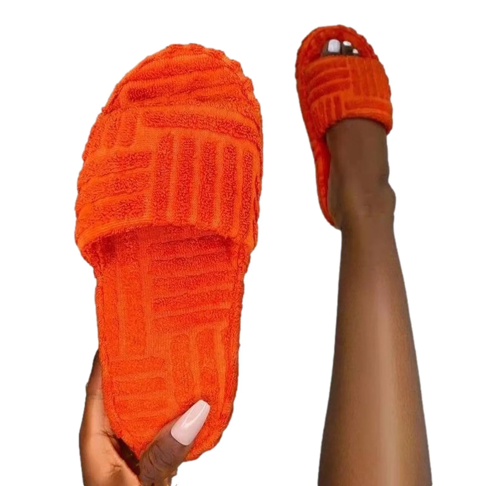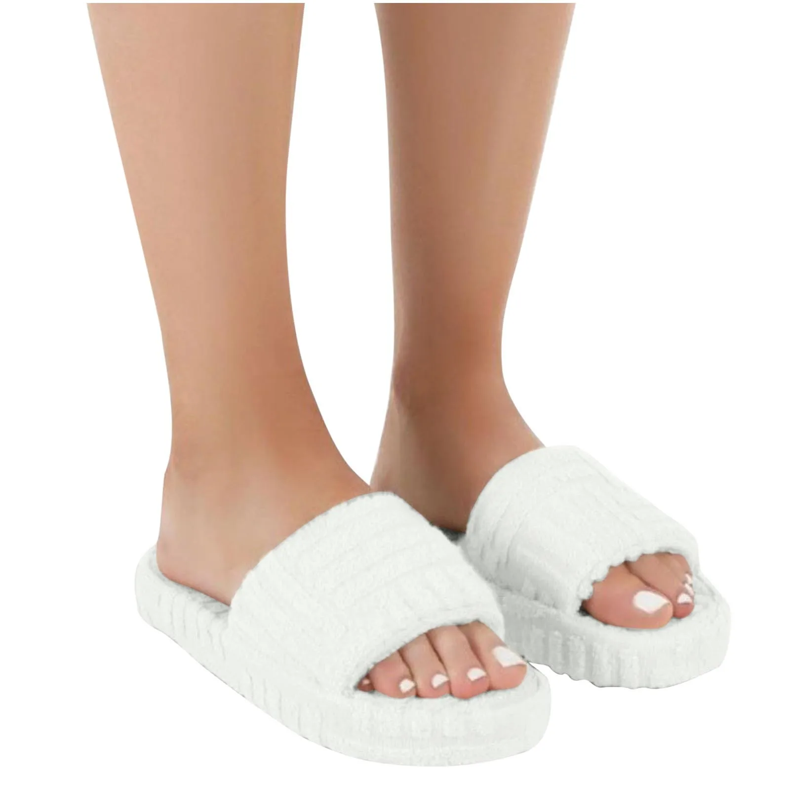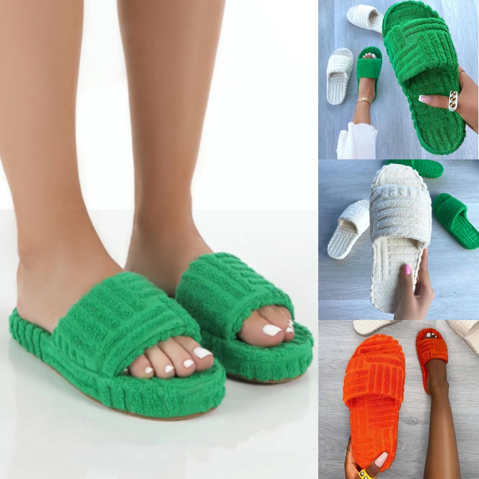 Зимние тапочки; Женские удобные меховые тапочки на плоской подошве; Однотонная Удобная теплая обувь для отдыха на толстой подошве с открытым носком
