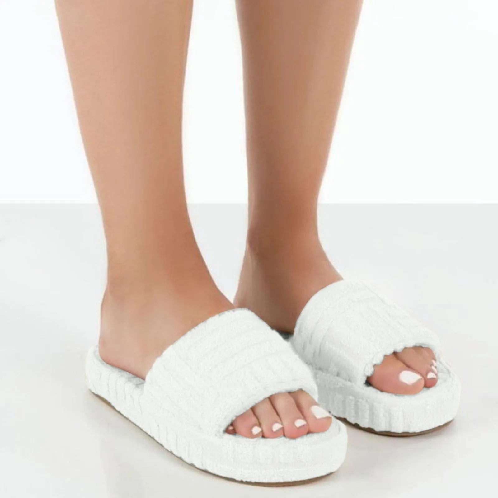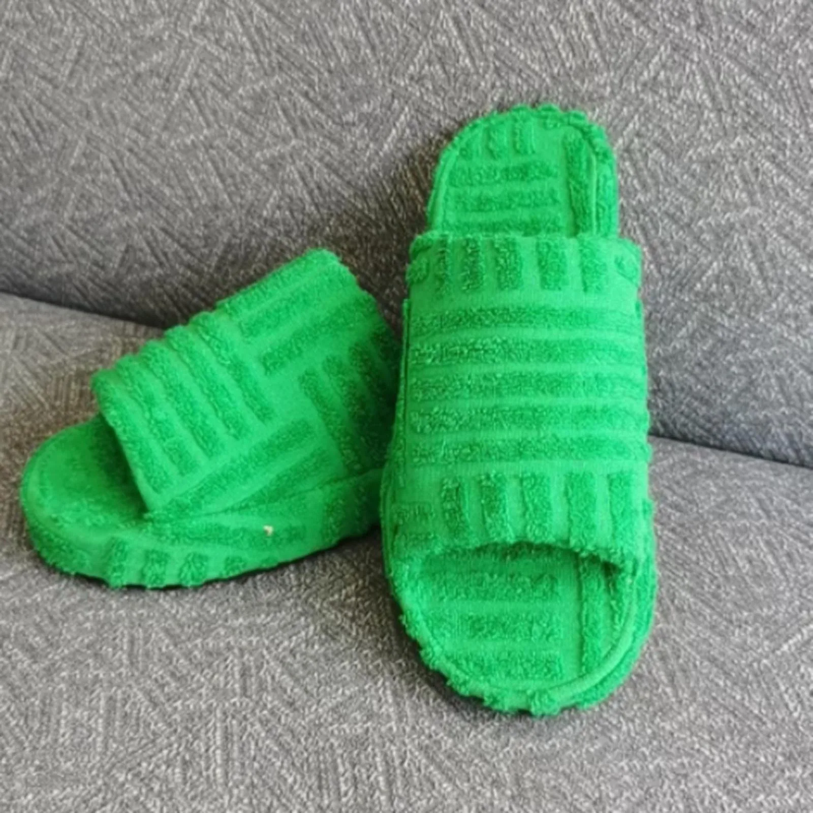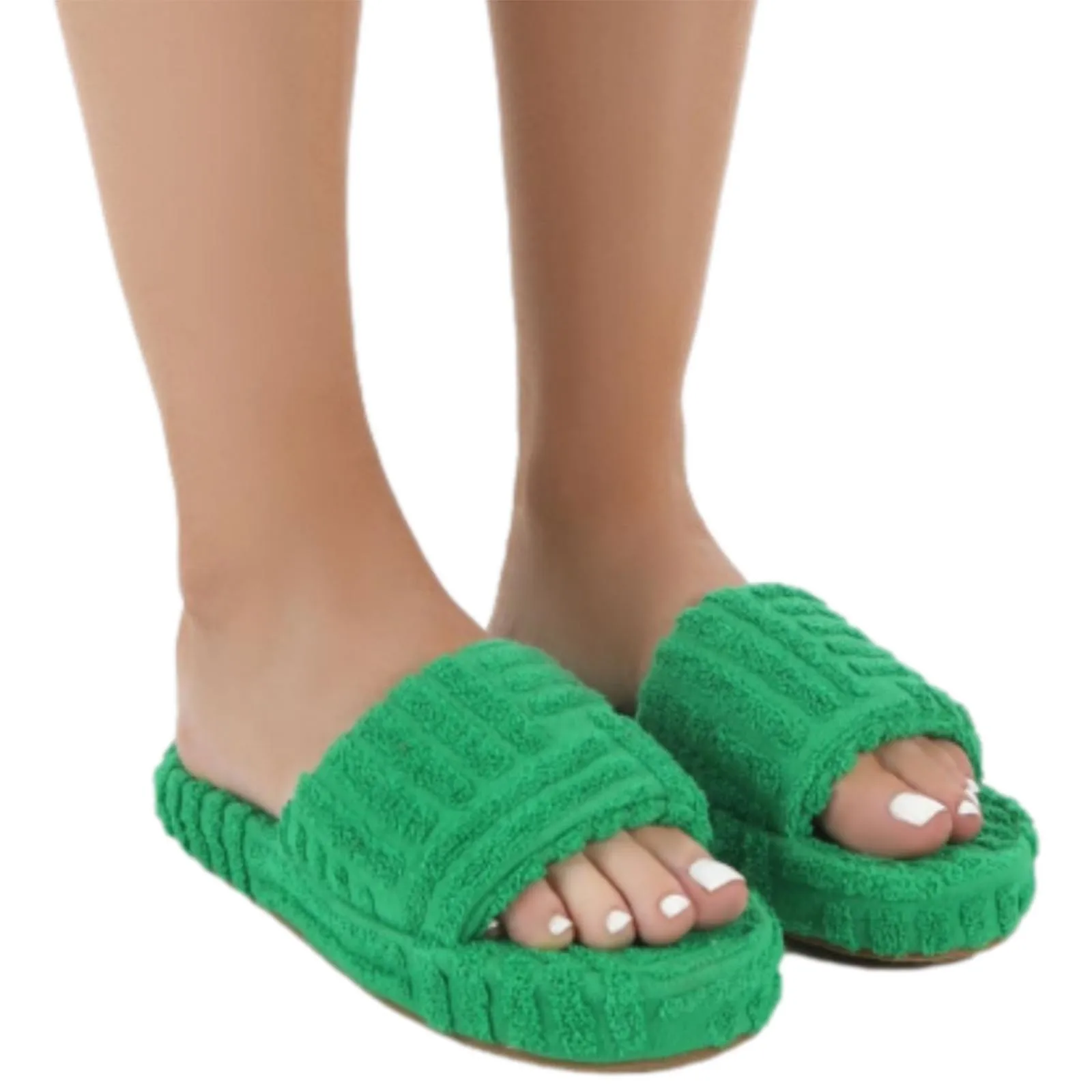 Зимние тапочки; Женские удобные меховые тапочки на плоской подошве; Однотонная Удобная теплая обувь для отдыха на толстой подошве с открытым носком