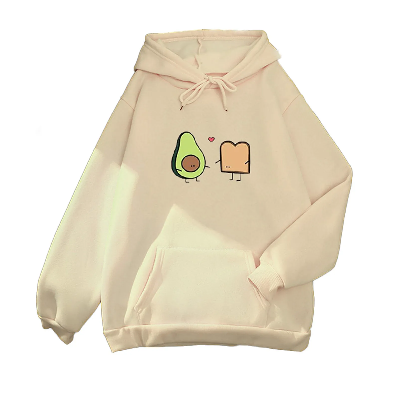 Толстовка женская с капюшоном и принтом авокадо, свитшот с длинным рукавом в Корейском стиле оверсайз, флисовый теплый пуловер с карманами, худи, на осень