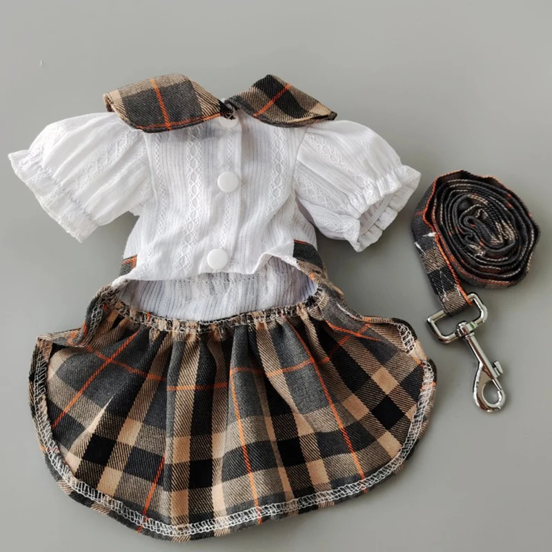 Клетчатые платья для собак в колледже, костюм с поводком, клетчатые...