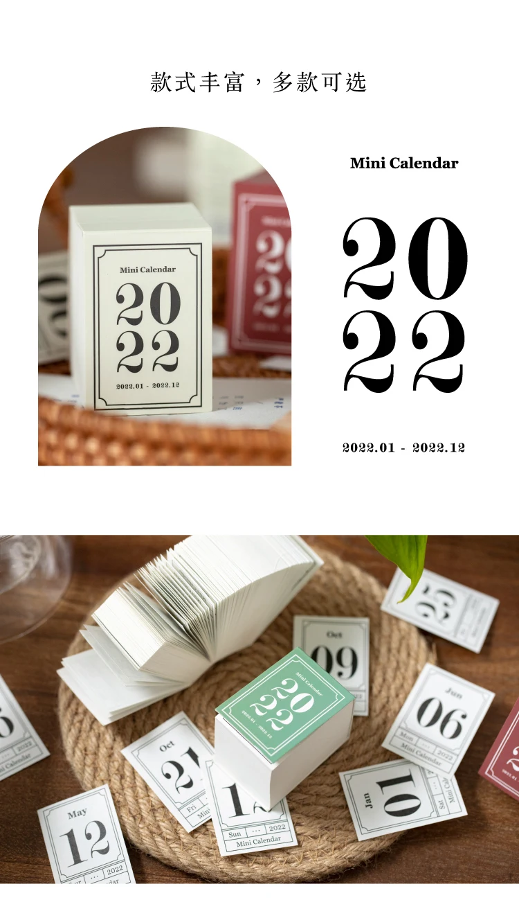 Тип: 2022 Настольный календарьМатериал: бумагаАртикул: 4 вида конструкцийРазмер: 35*51 ммВес: 54 гПосылка: пластиковая посылкаДата от 2022,01 до 2022,12